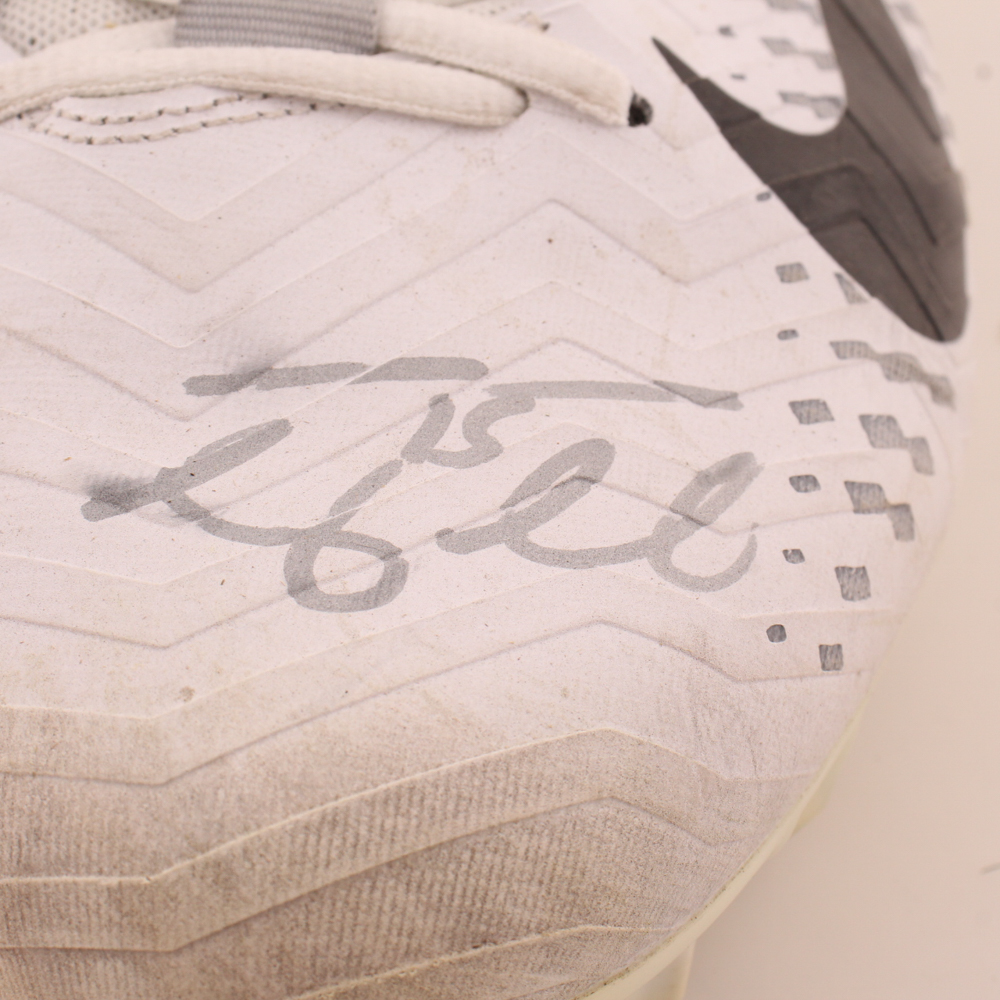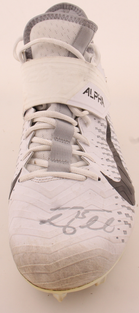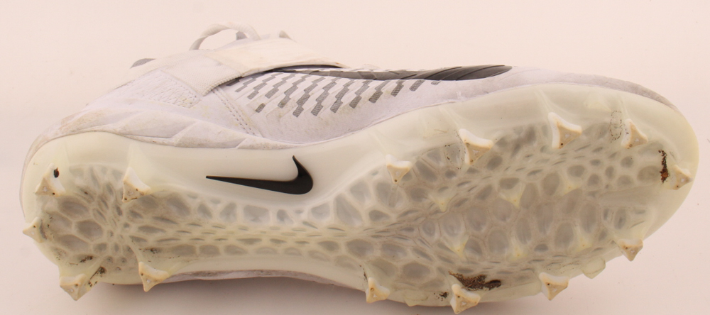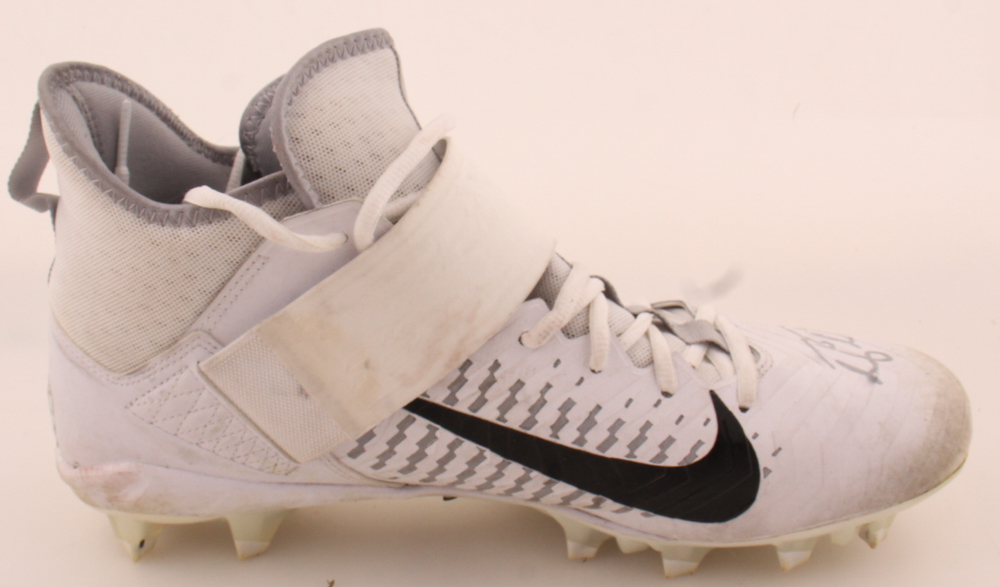 Nike football cleat, size 12. Hand-signed by Tim Tebow (Denver Broncos). Please note, there is scuffing and staining on the cleat.