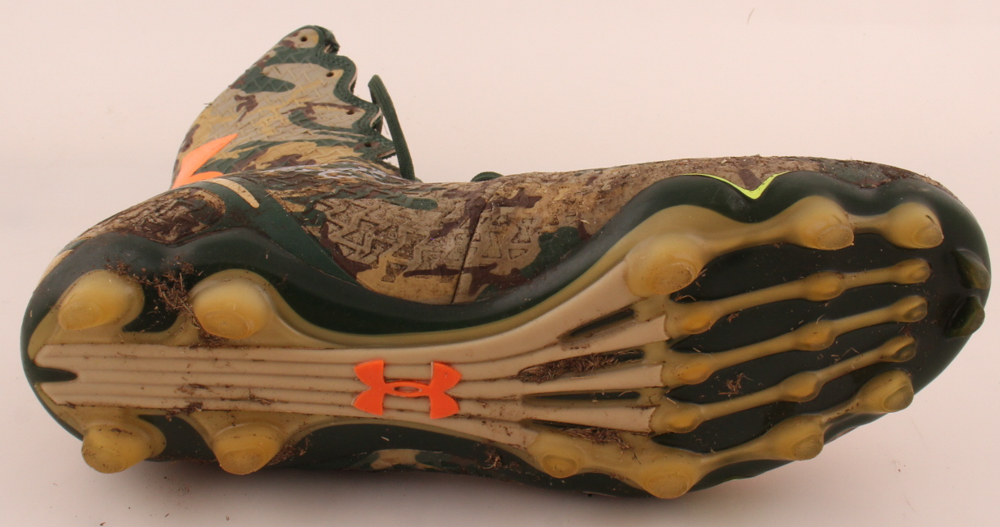 Under Armour football cleat, size 13. Hand-signed by Tim Tebow (Denver Broncos).