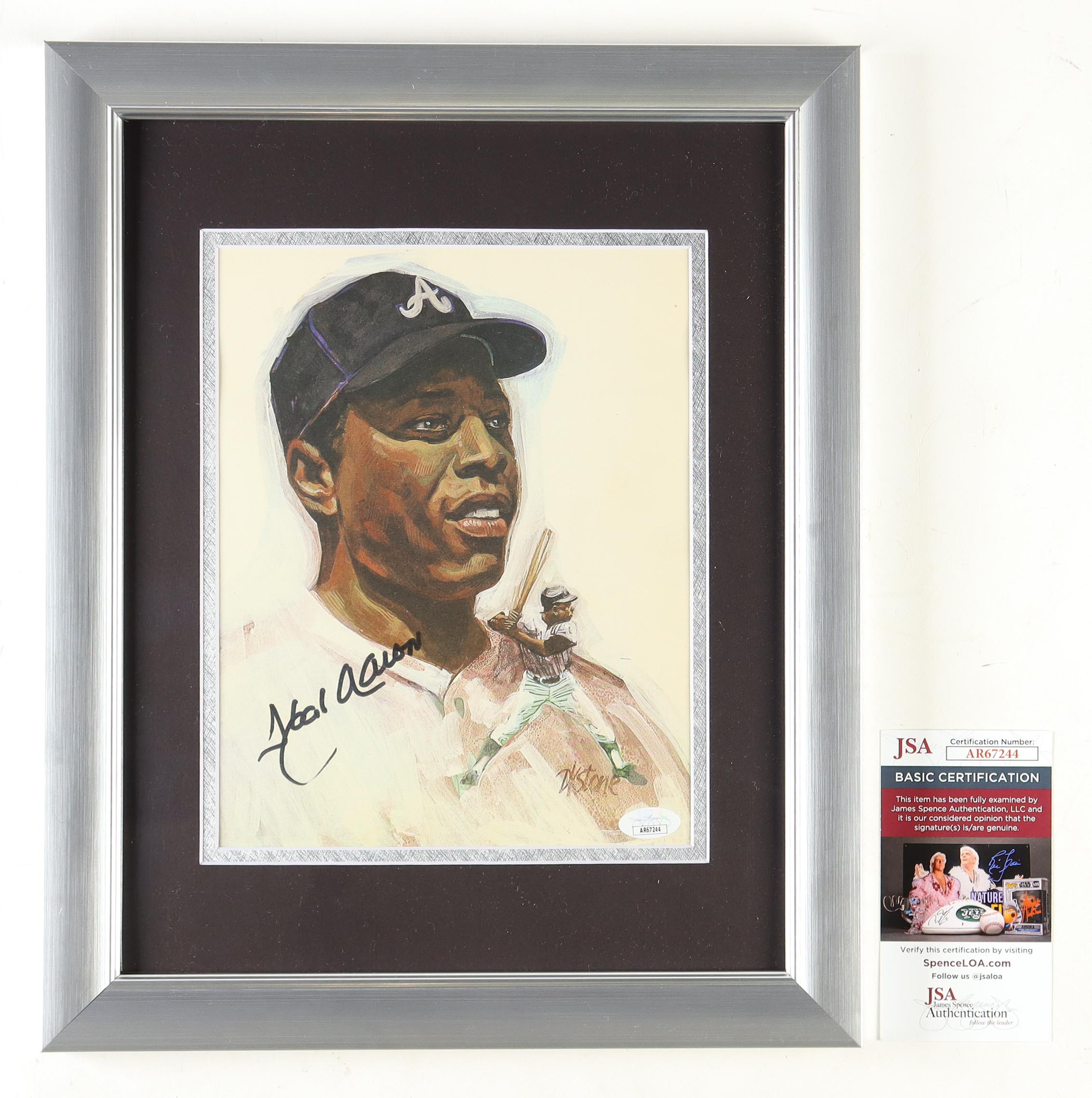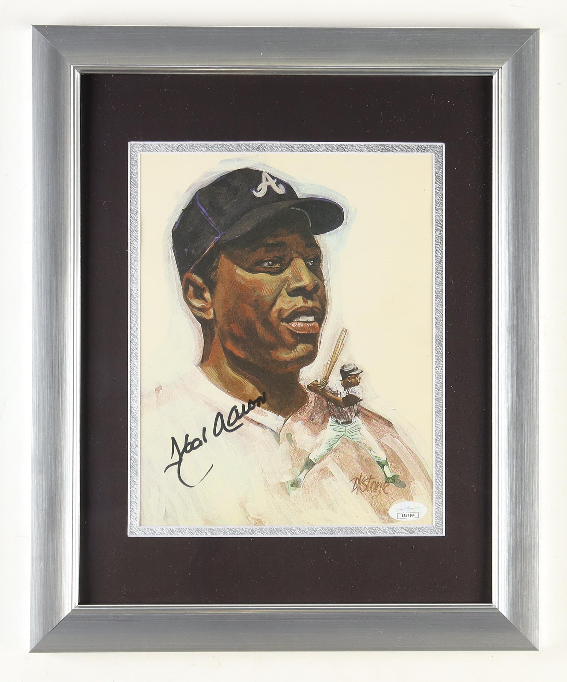 Hank Aaron Signed Braves Custom Framed Vintage Dystone Print (JSA)