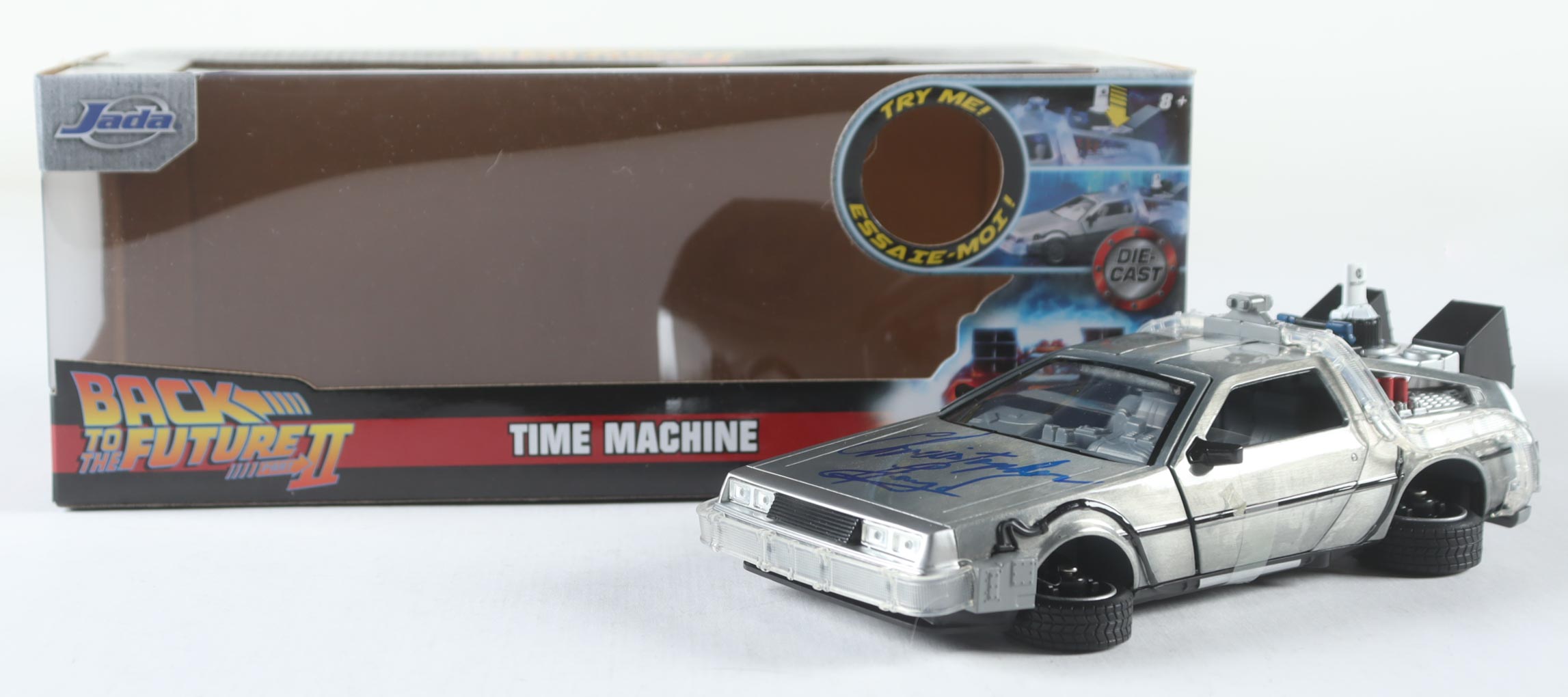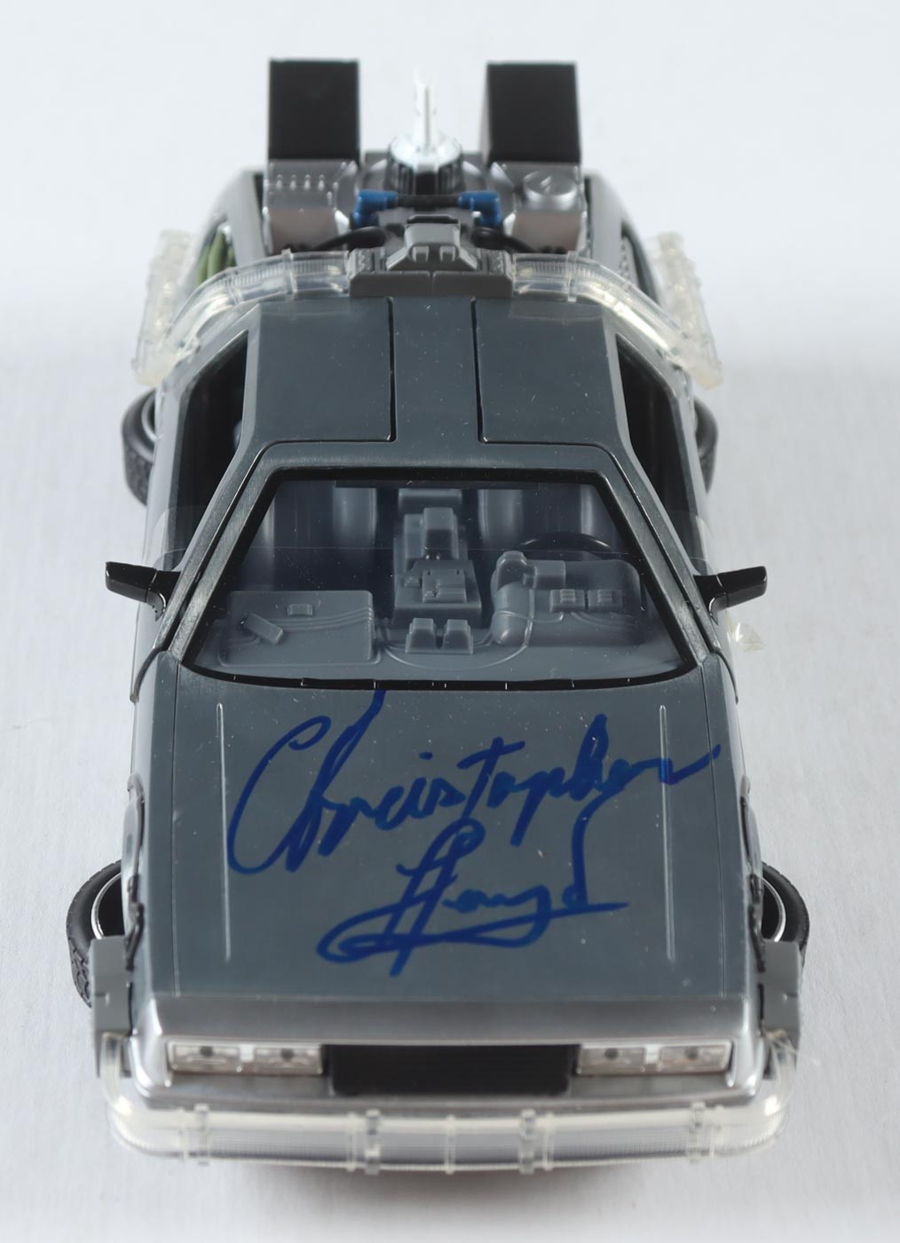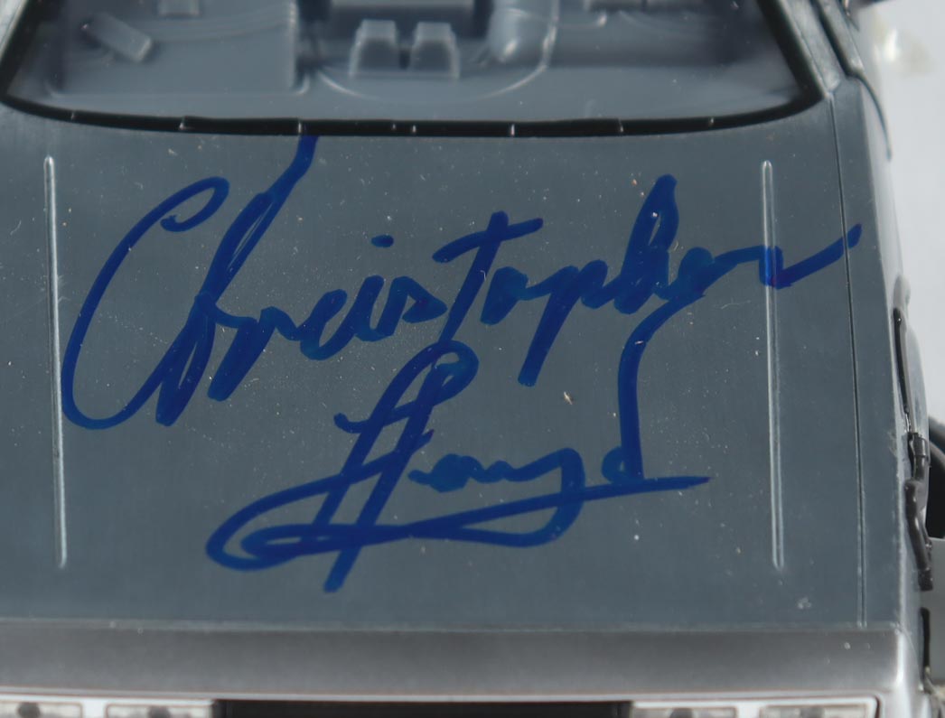 Die-cast car has been hand-signed by Christopher Lloyd (Dr. Emmett 'Doc' Brown).