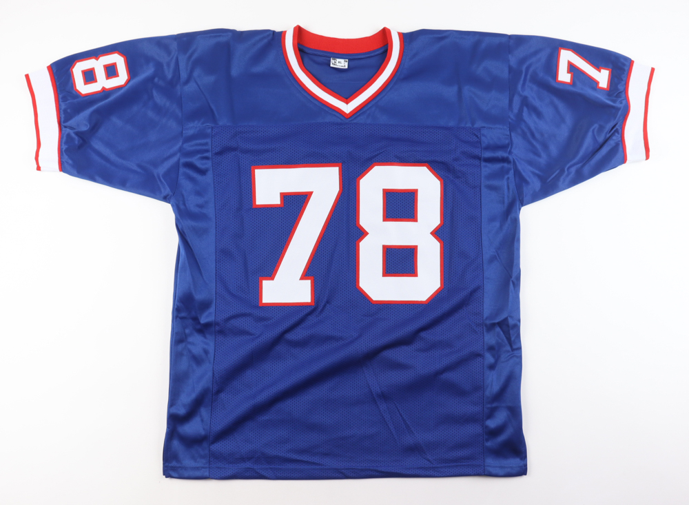 Custom jersey. Everything sewn on, size XL. Hand-signed by Bruce Smith (HOF).