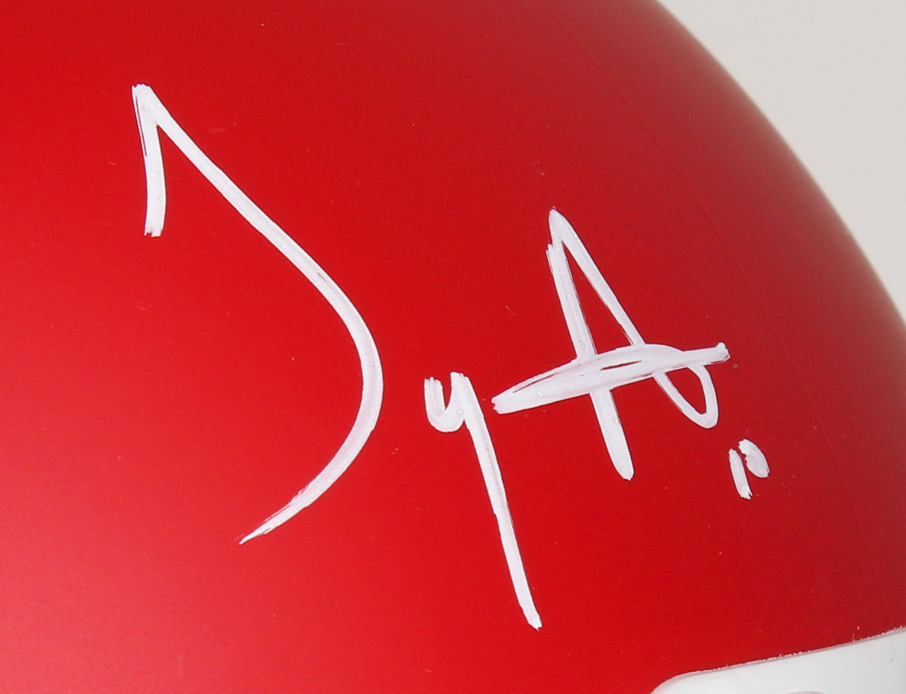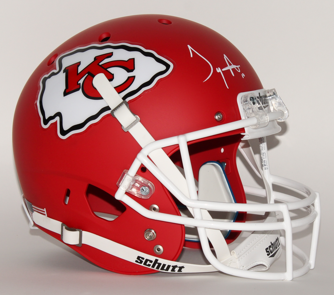 Schutt full-size matte red replica helmet. Hand-signed in white paint pen by Tyreek Hill.