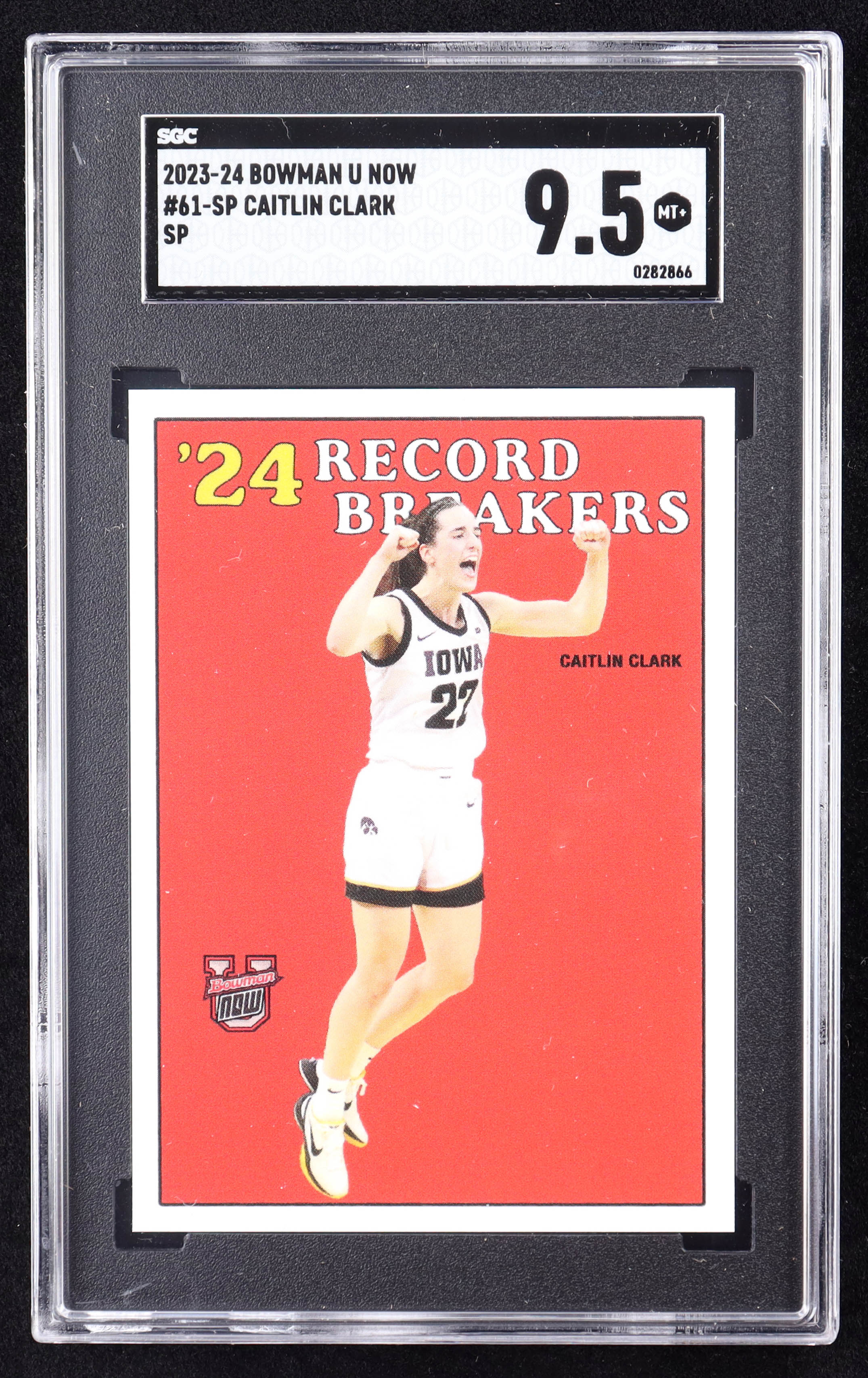 Caitlin Clark 2023-24 Bowman University Now #61SP / '88 Record Breaker Red (SGC 9.5)