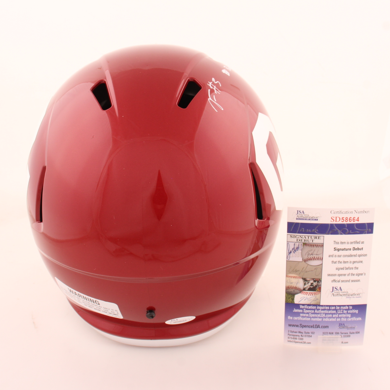 Riddell Oklahoma Sooners Full-Size replica Speed helmet. Hand-signed and inscribed by Jalil Farooq.