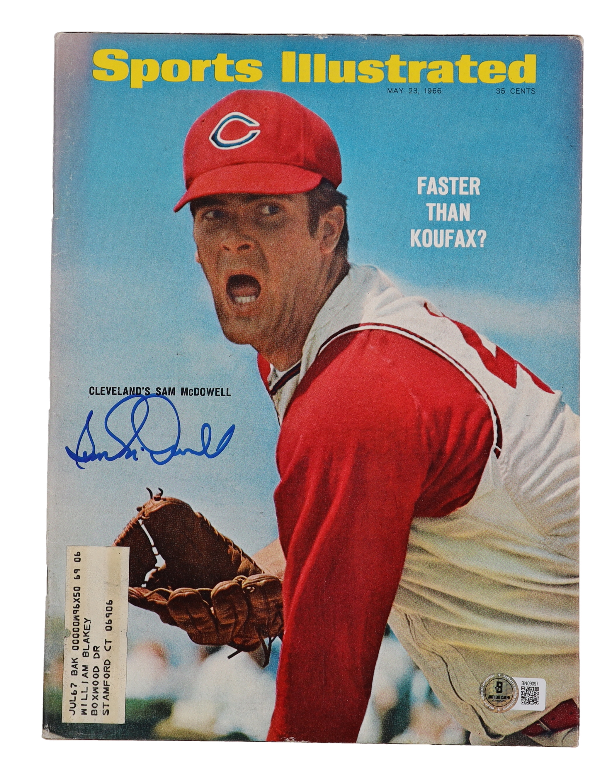 May 23, 1966 magazine has been hand-signed by Sam McDowell (Cleveland Indians).