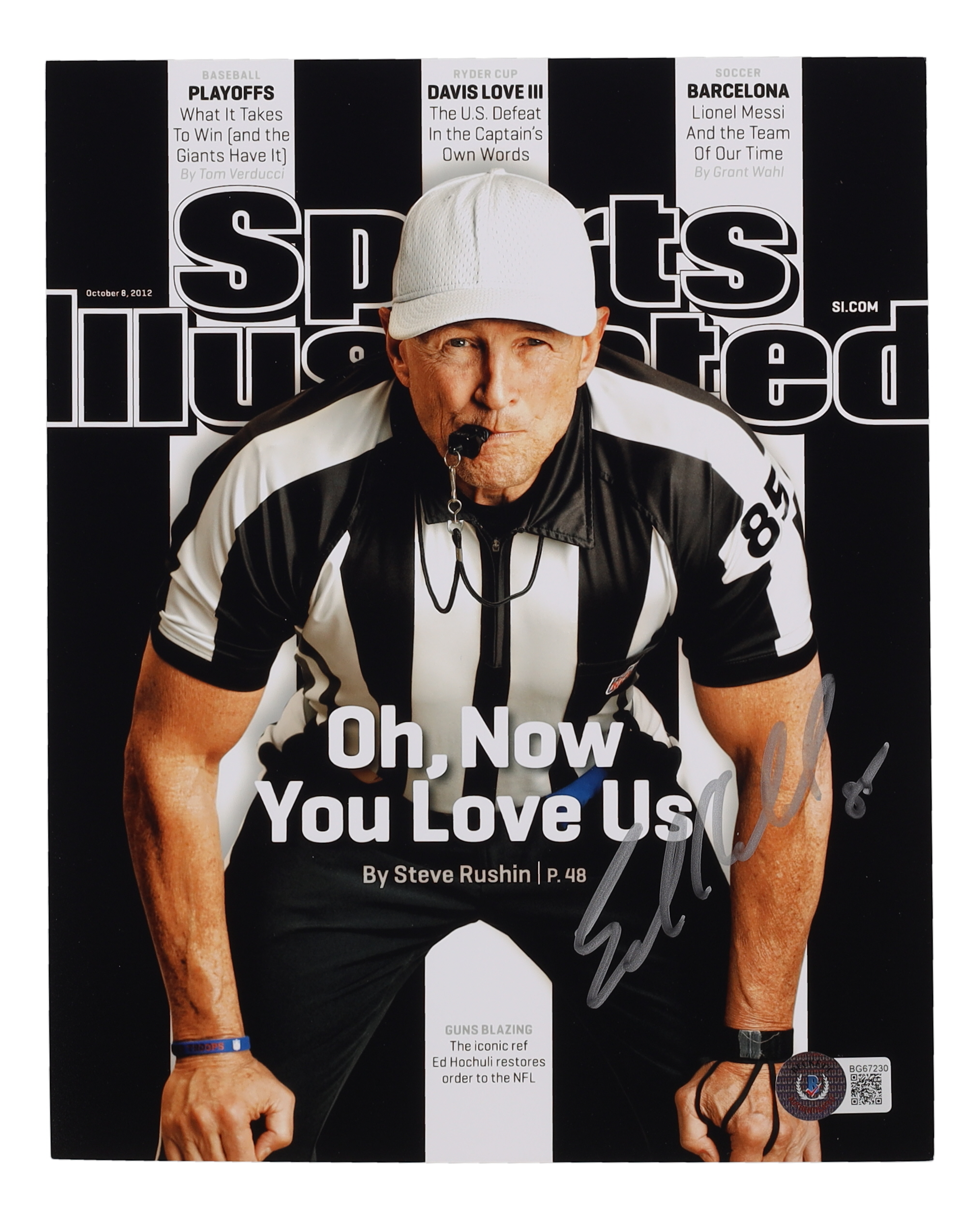 Photo measures 8" x 10" in size and has been hand-signed by Ed Hochuli.