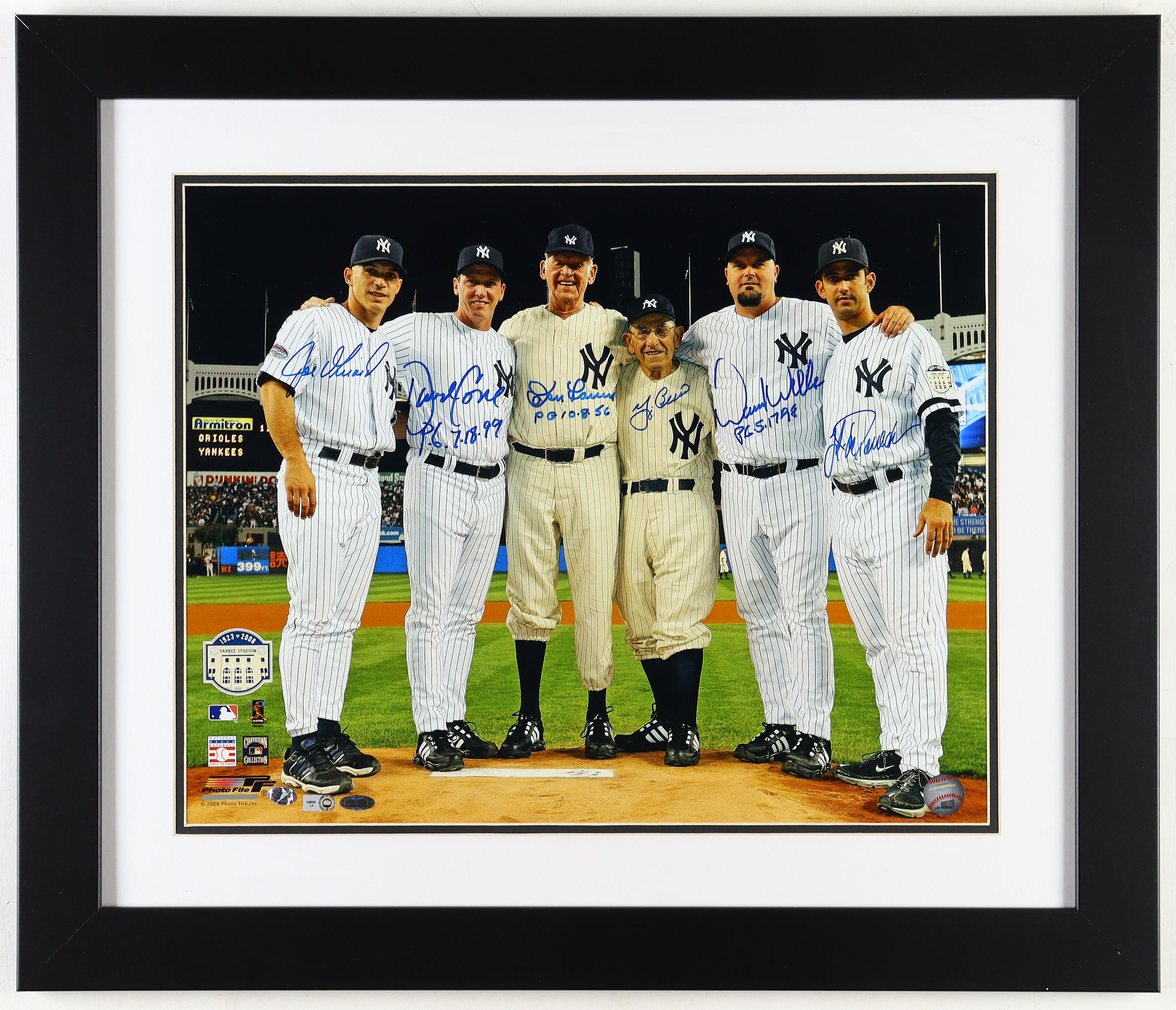 Yankees Perfect Game Pitchers & Catchers Custom Framed Photo Display Signed By (6) With Joe Girardi, David Cone, Don Larsen, Yogi Berra, David Wells & Jorge Posada (MLB)