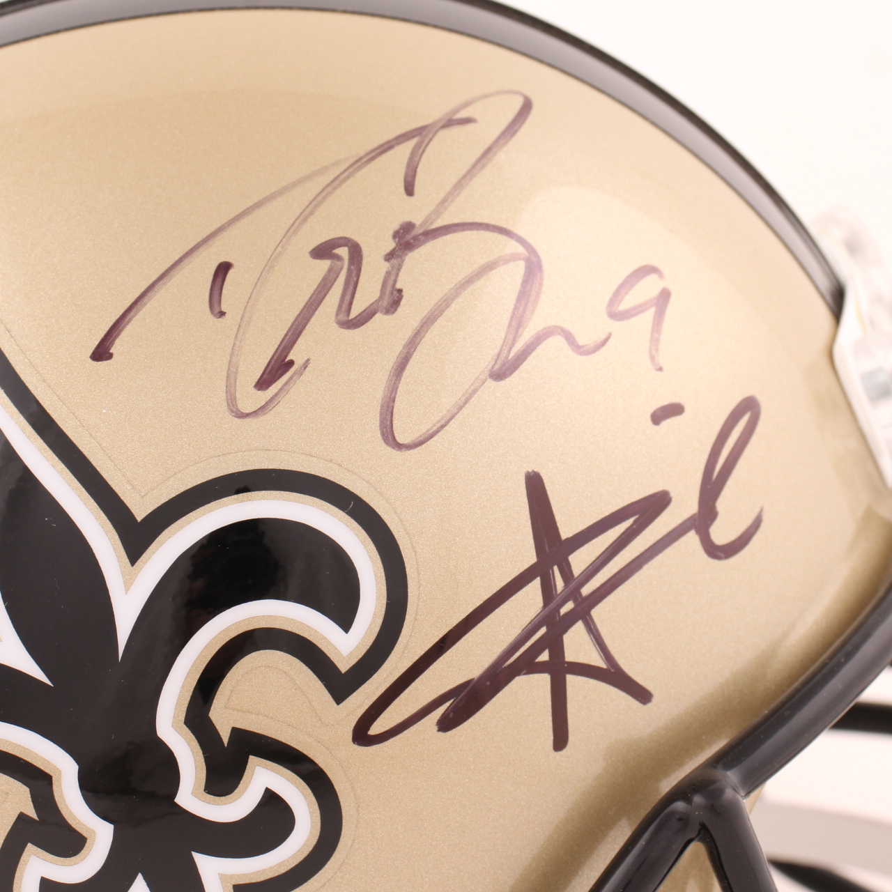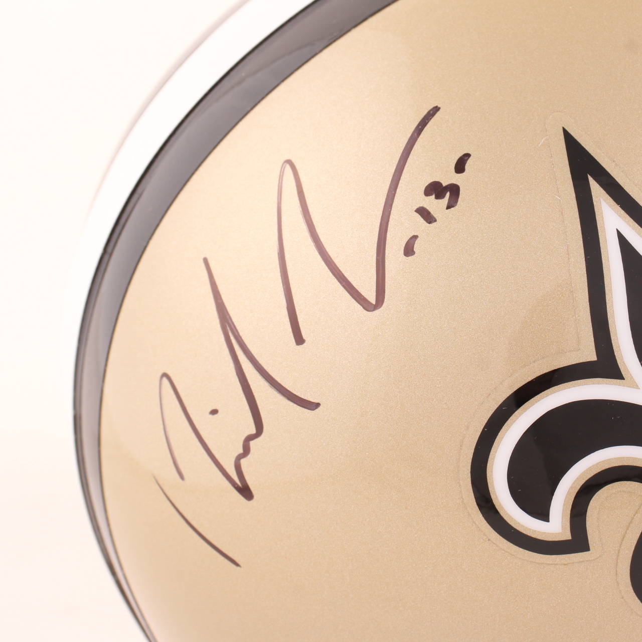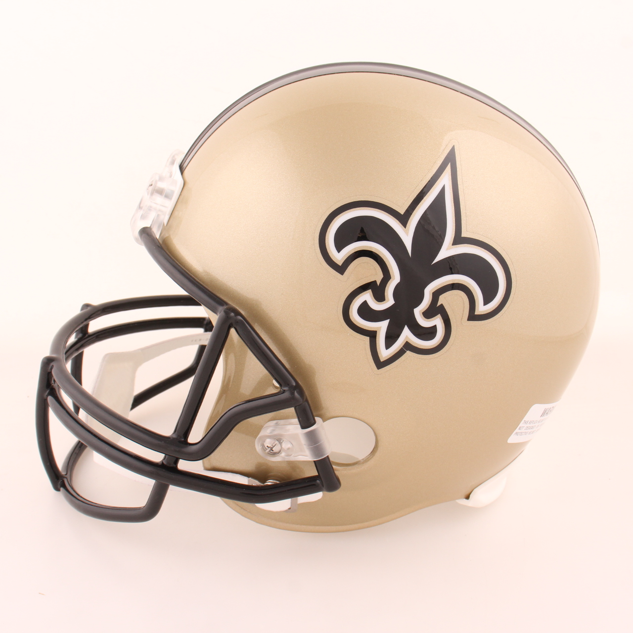 Riddell New Orleans Saints full-size replica helmet. Hand-signed by Drew Brees, Alvin Kamara and Michael Thomas.