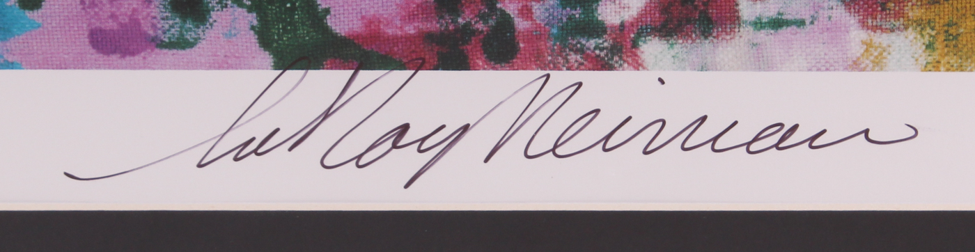 Custom framed print measures 28.5" x 29" in size. The print has been hand-signed in black felt tip pen by artist Leroy Neiman (D. 2012).