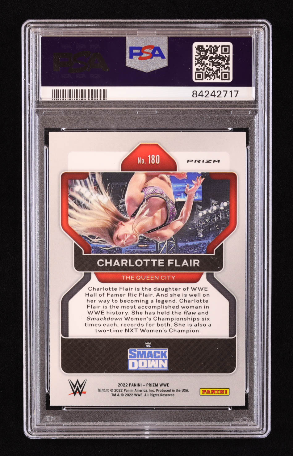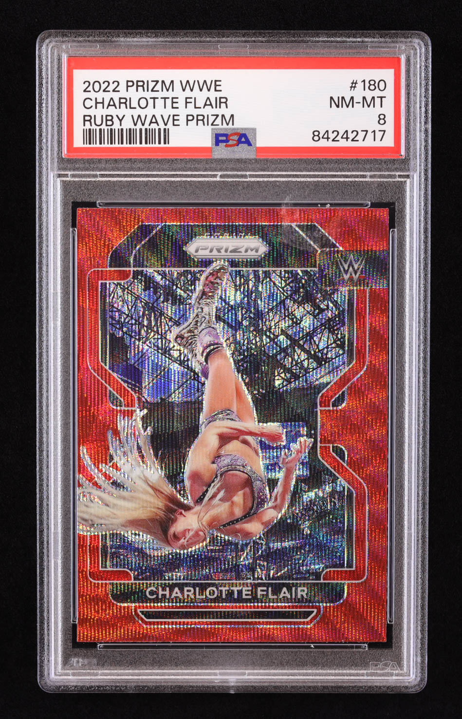 Charlotte Flair 2022 Panini Prizm WWE Prizms Ruby Wave #180 (PSA 8)
