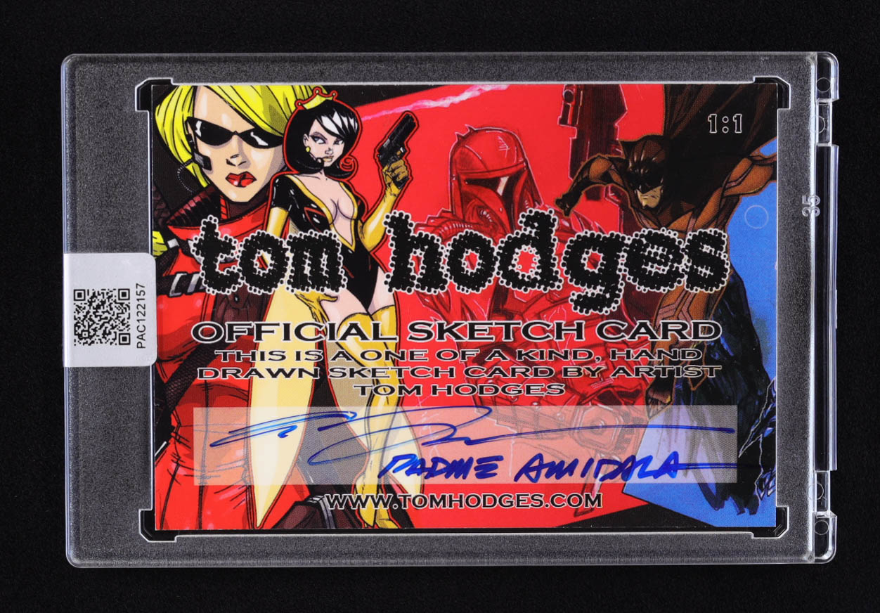This original sketch card includes original art by renowned comic book artist, Tom Hodges. Also includes a character name inscription on the back by the artist.