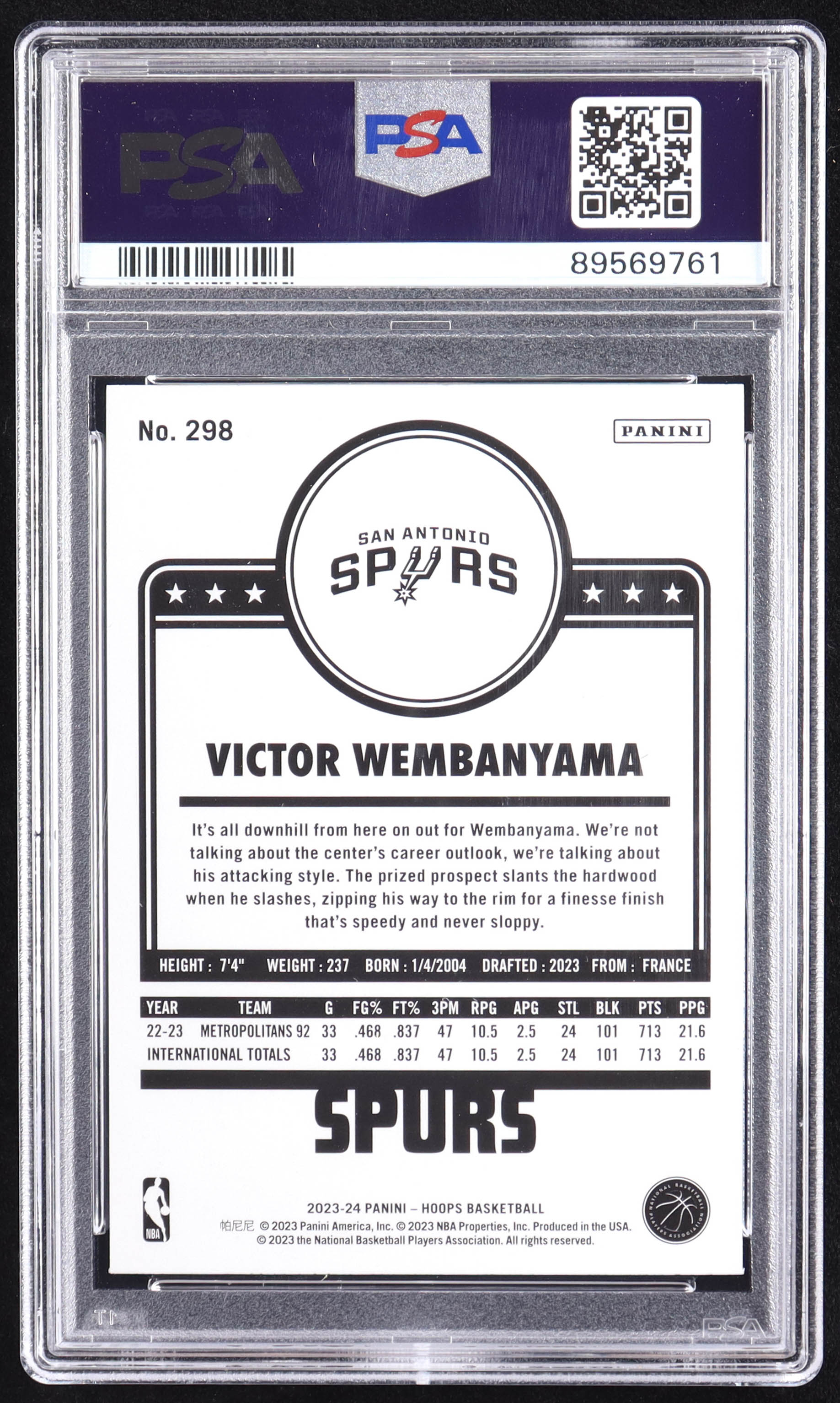 Victor Wembanyama 2023-24 Hoops #298 RC (PSA 10)