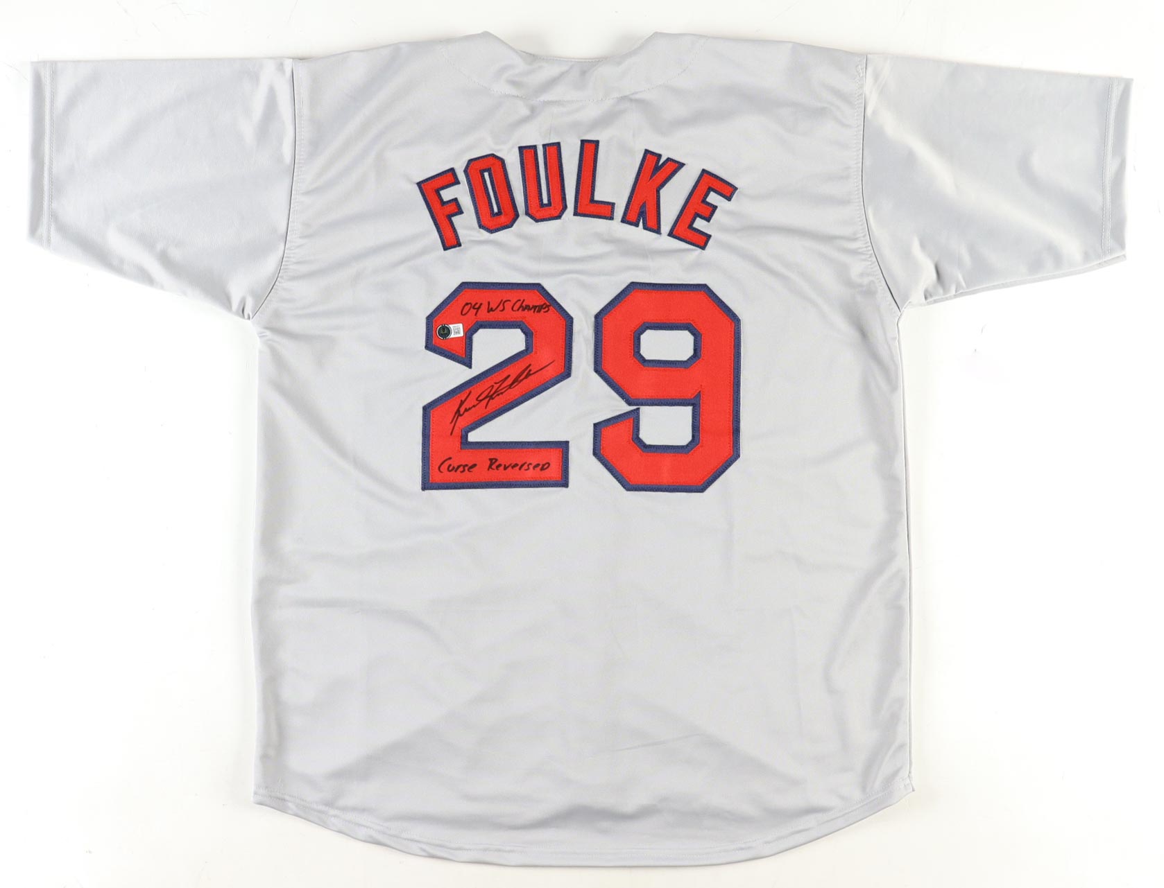 Keith Foulke Signed Jersey Inscribed "Curse Reversed" & "04 WS Champs" (Beckett)