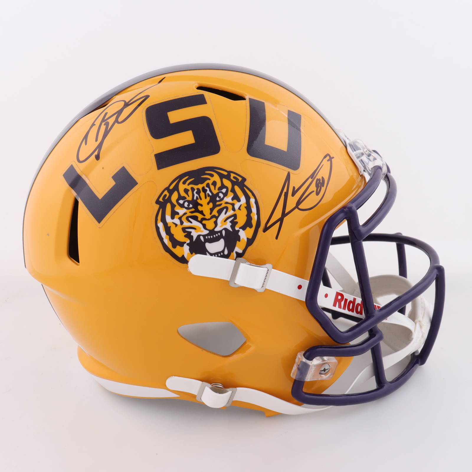 Riddell LSU Tigers full-size replica Speed helmet. Hand-signed by Odell Beckham Jr. and Jarvis Landry.
