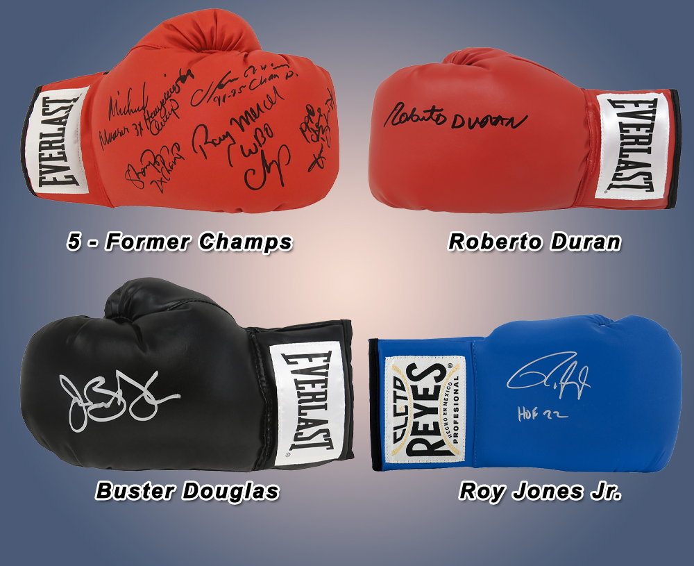 Each Boxing Collection Mystery Box contains three (3) autographed boxing items that have been inserted. There are over 40 different World Champion boxers included in this Series 17 Boxing Collection mystery box, which is a Pristine Exclusive edition that is limited to 100 boxes.