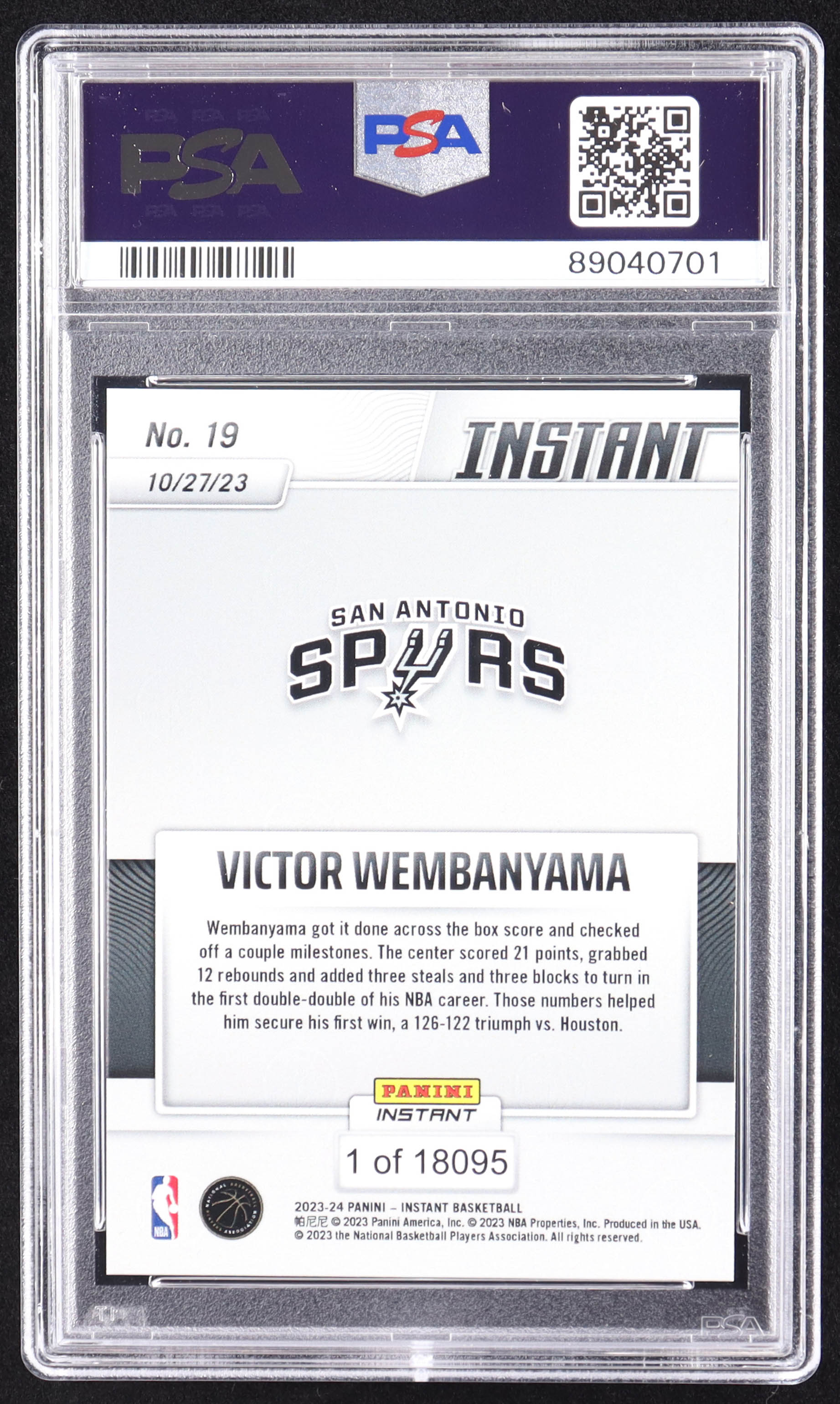 Victor Wembanyama 2023-24 Panini Instant #19 RC (PSA 9)