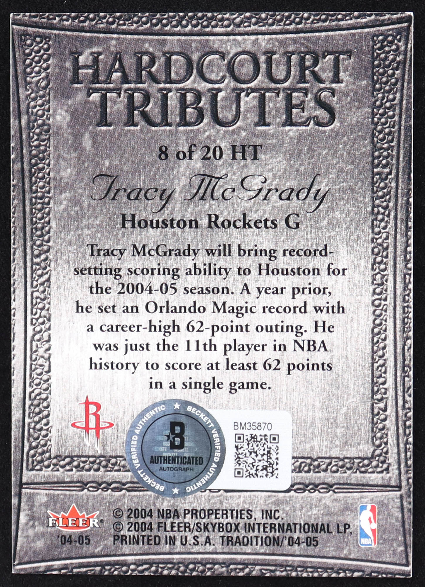 Tracy McGrady Signed 2004-05 Fleer Tradition Hardcourt Tributes #8 (Beckett)