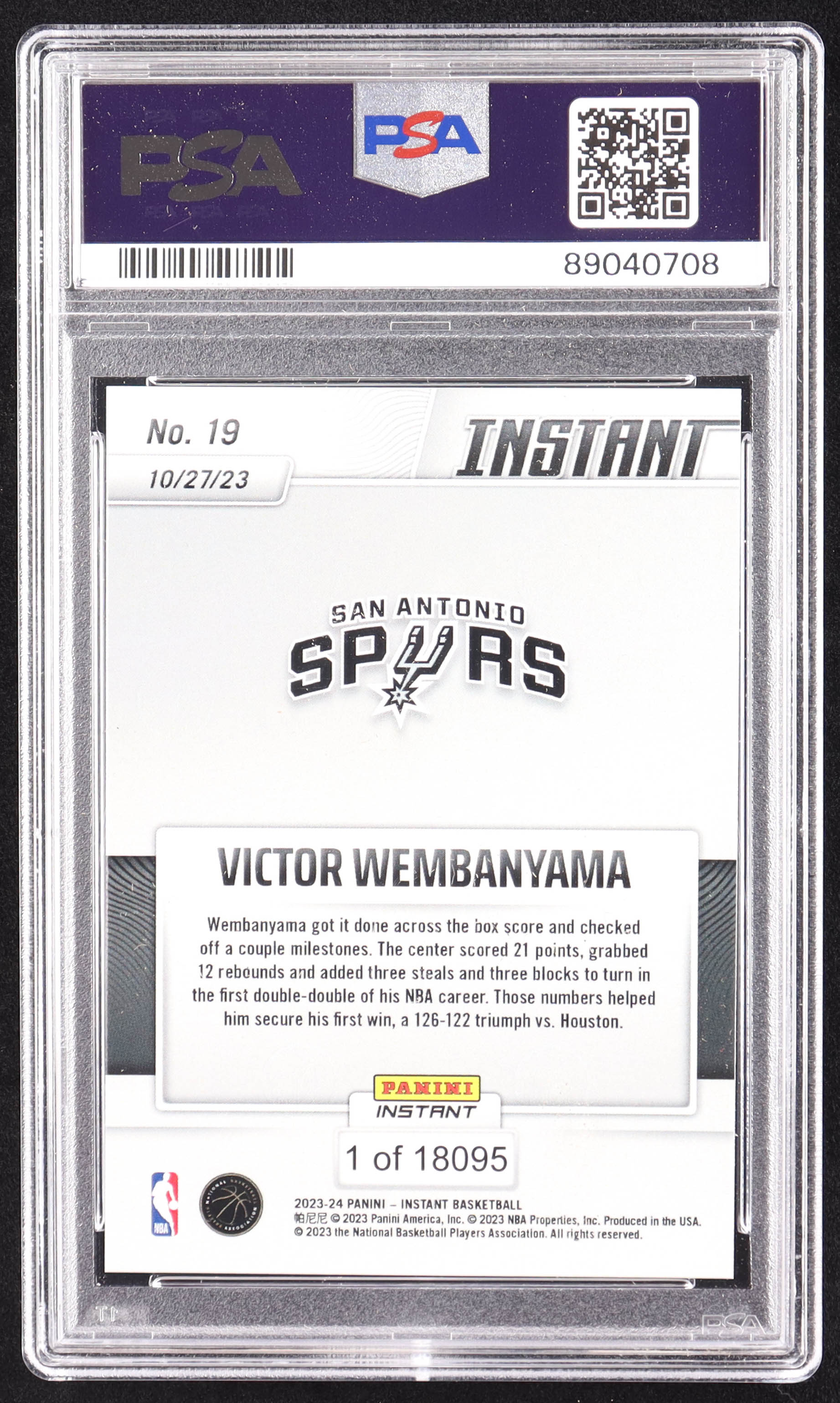 Victor Wembanyama 2023-24 Panini Instant #19 RC (PSA 9)