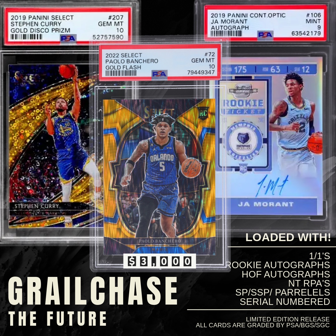 Mints Presents Grail Chase: The Golden Chalice Sports Card Mystery Pack with (1) graded card. All cards have been graded by either PSA, BGS, or SGC!