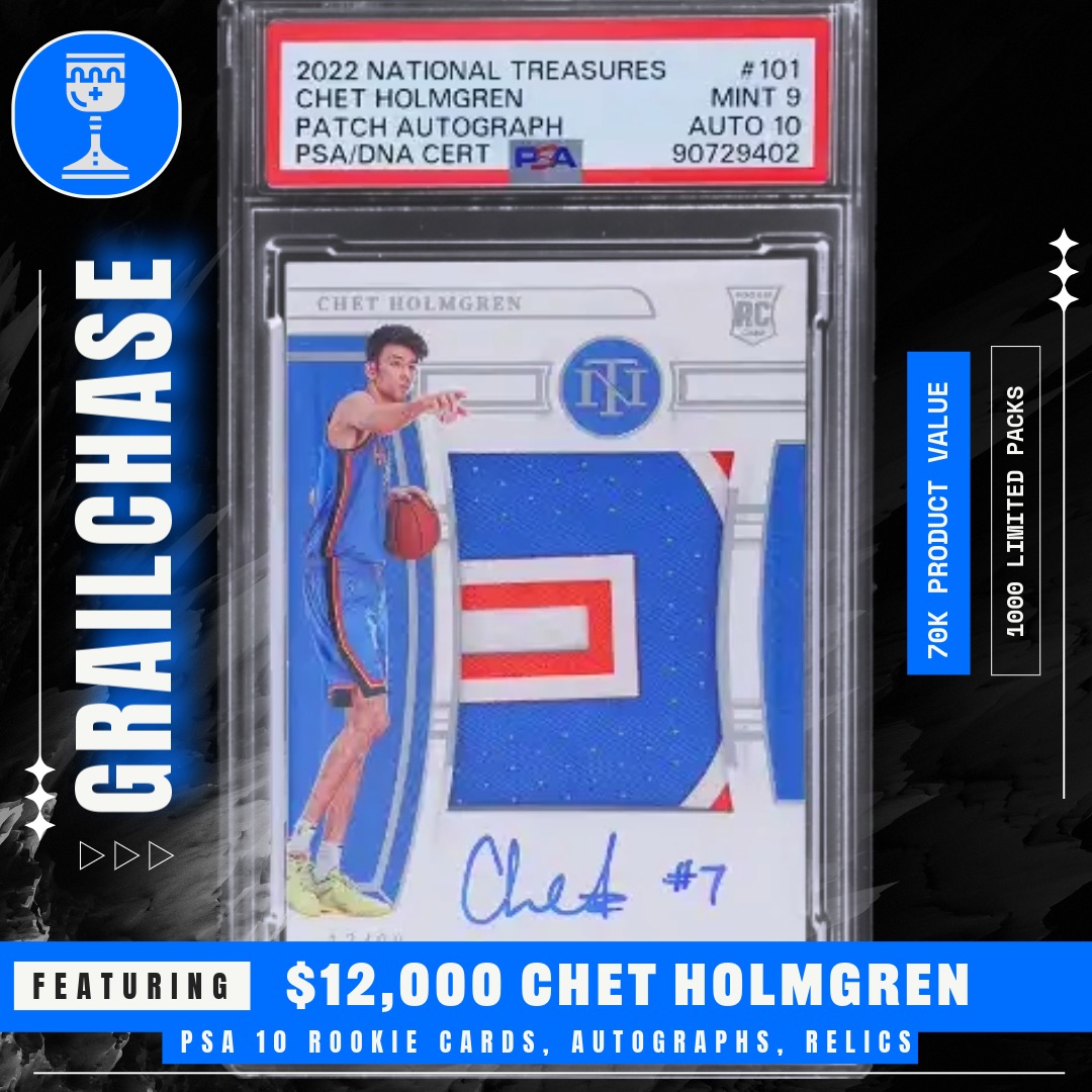Look for the National Treasures Chet Holmgren RPA! Estimated value $12,000!