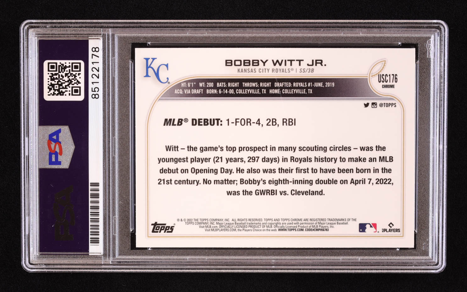 Bobby Witt Jr. Signed 2022 Topps Chrome Update #USC176 RC (PSA)