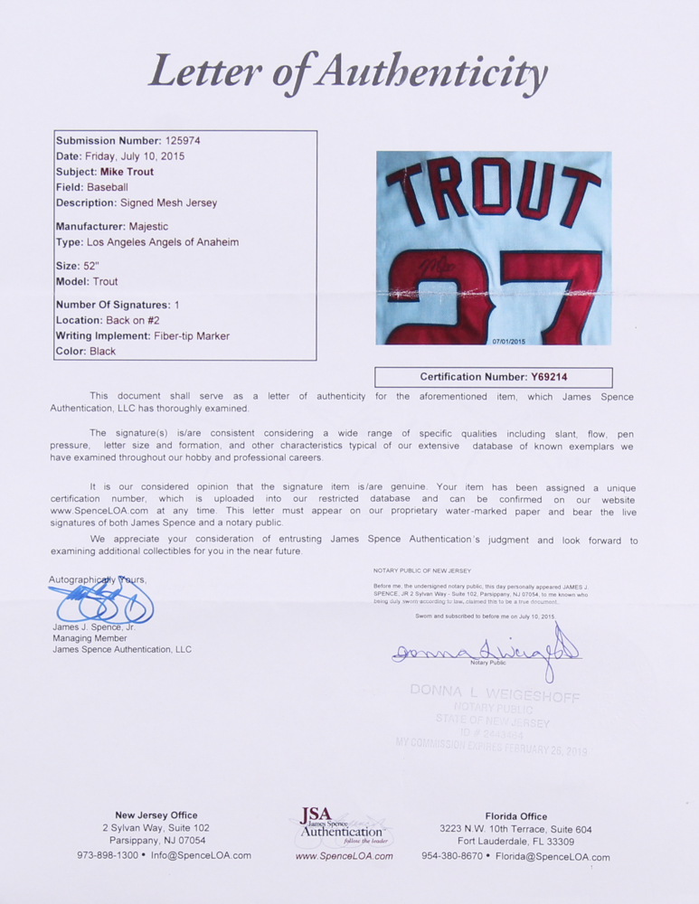 Mike Trout Signed Angels Mesh Jersey (JSA LOA)