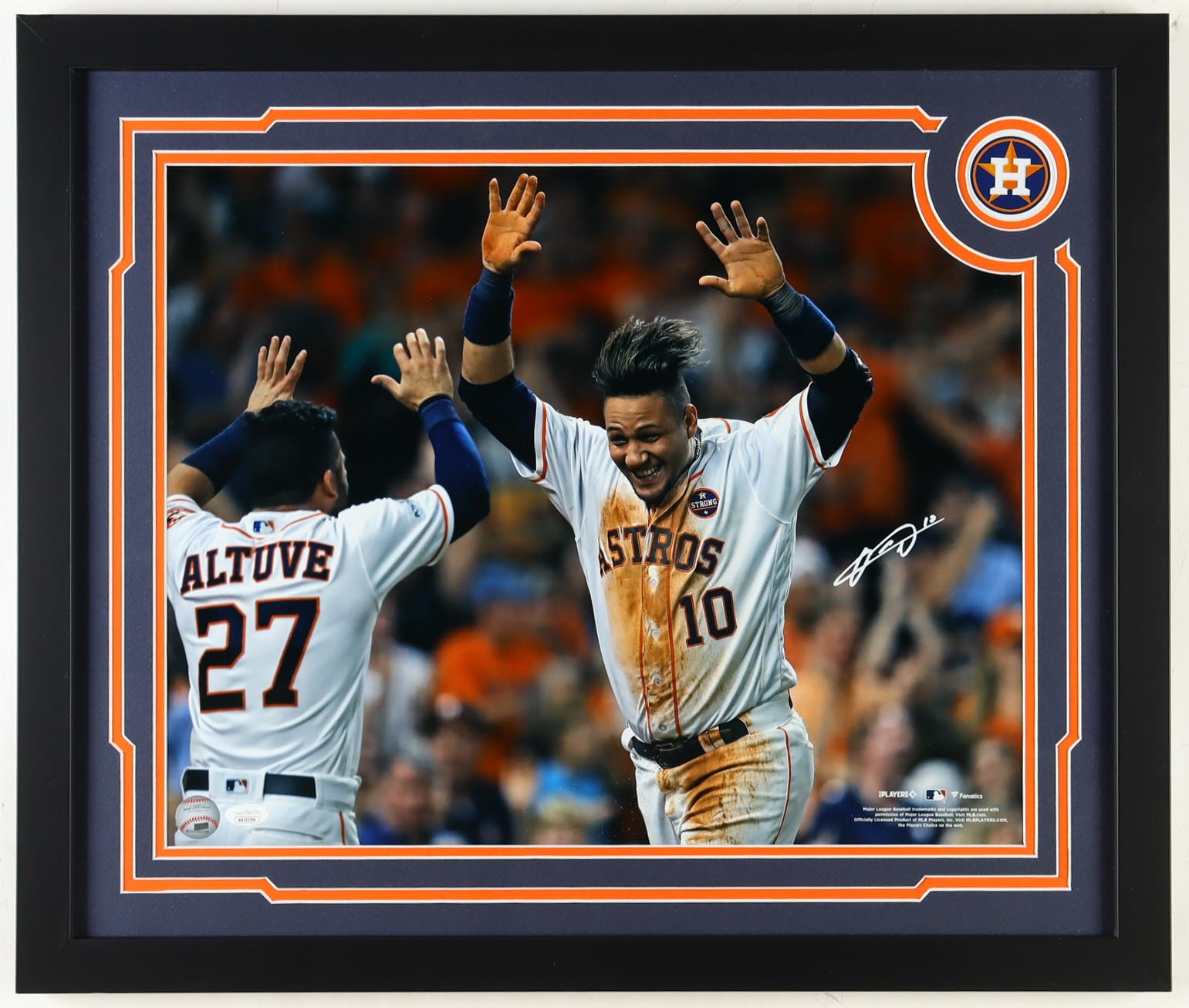 Custom frame measures approximately 22.25" x 26.25" in size. Features a photo that has been hand-signed by Yuli Gurriel (Houston Astros).