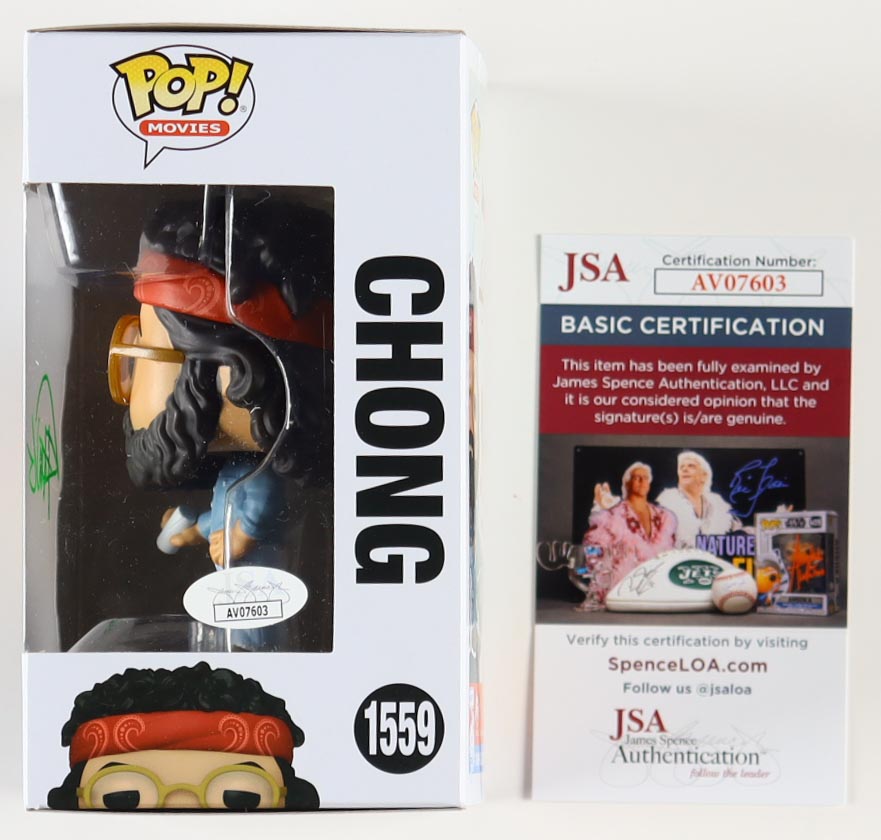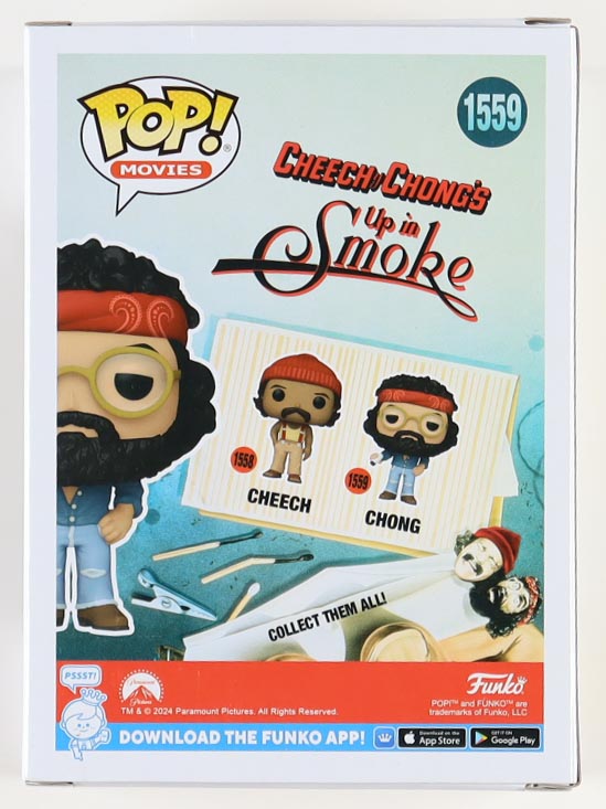 Funko pop! vinyl figure measures approximately 4" tall and the packaging has been hand-signed by Tommy Chong. Please note, the packaging window has been swapped.