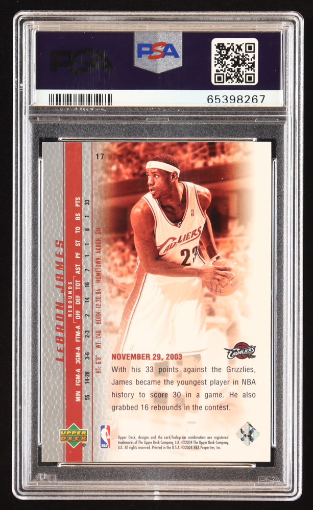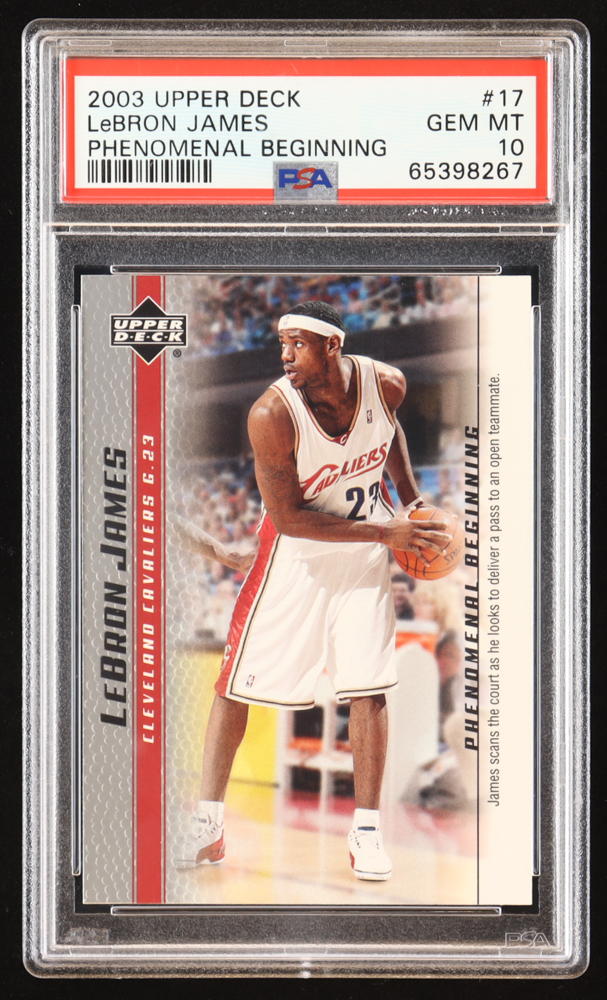 LeBron James 2003-04 Upper Deck Phenomenal Beginning LeBron James #17 RC / James Scans the Court (PSA 10)