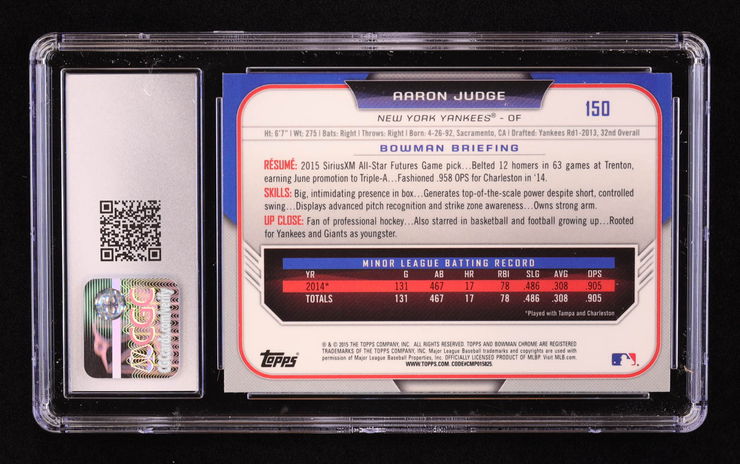 Aaron Judge 2015 Bowman Chrome Draft #150 RC (CGC 10)