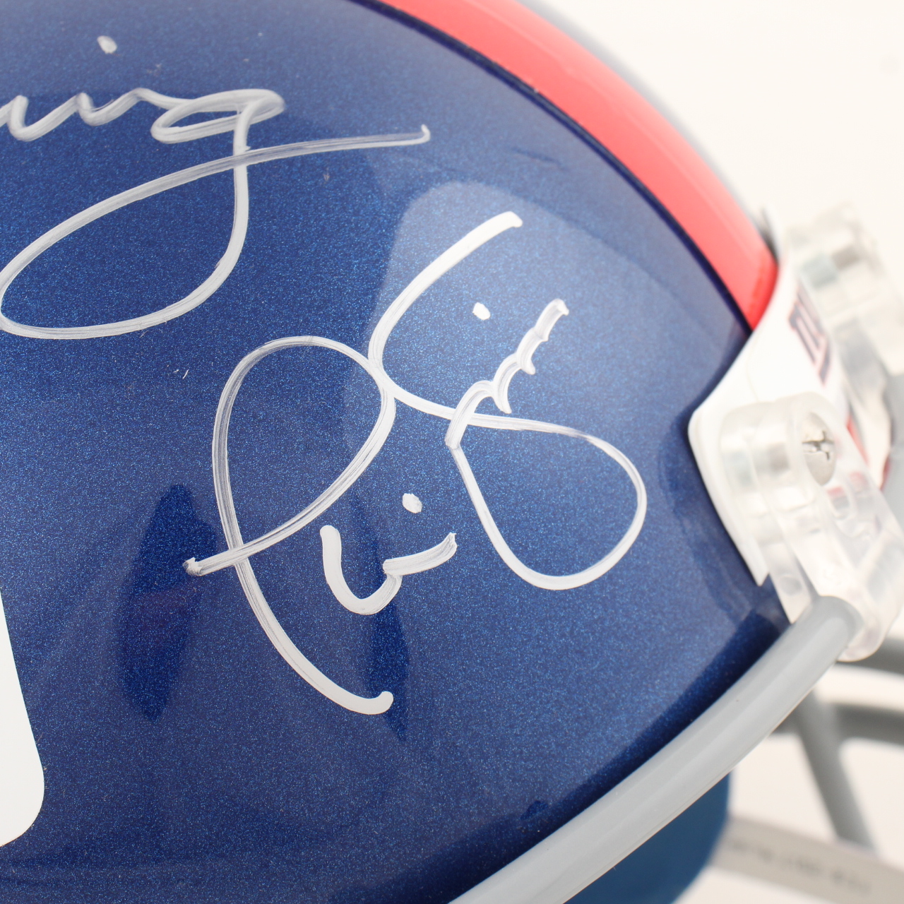 Riddell New York Giants full-size replica helmet. Hand-signed by Eli Manning and Phil Simms.