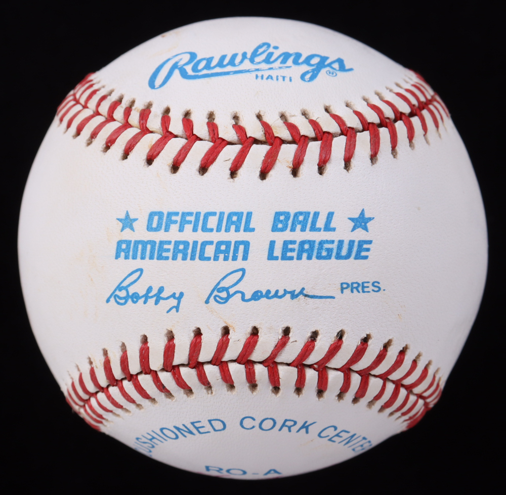 Rawlings Official American League baseball. Hand-signed by Yogi Berra (D. 2015, New York Yankees, HOF) & Dale Berra.