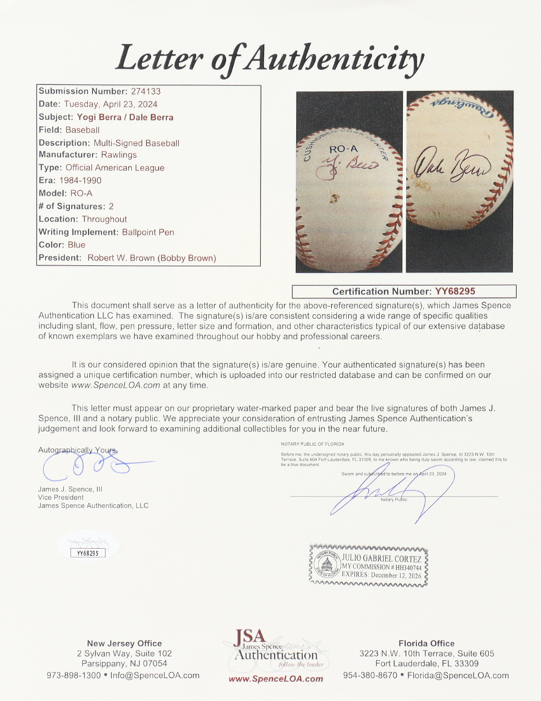 The autograph(s) includes an official James Spence Authentication (JSA) hologram and matching LOA for authenticity purposes.