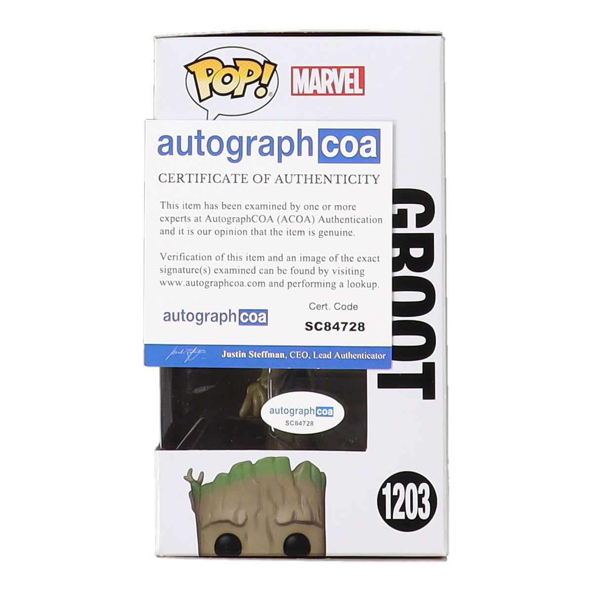 Vin Diesel Signed "Guardians of the Galaxy: Volume 3" #1203 Groot Funko Pop! Vinyl Figure (ACOA)