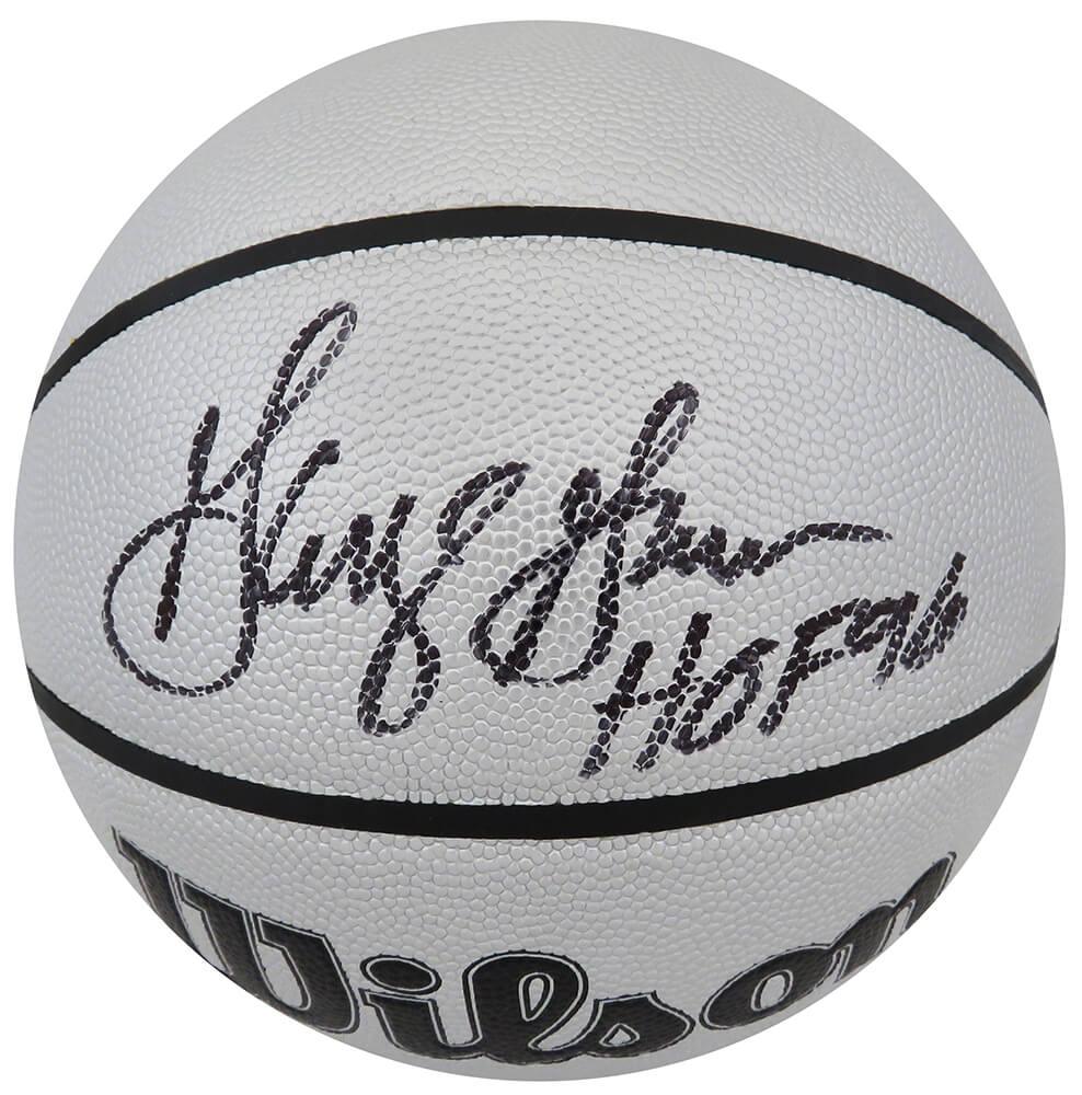 Wilson silver indoor/outdoor 75th Anniversary logo NBA basketball. Hand-signed by George Gervin (San Antonio Spurs, HOF).