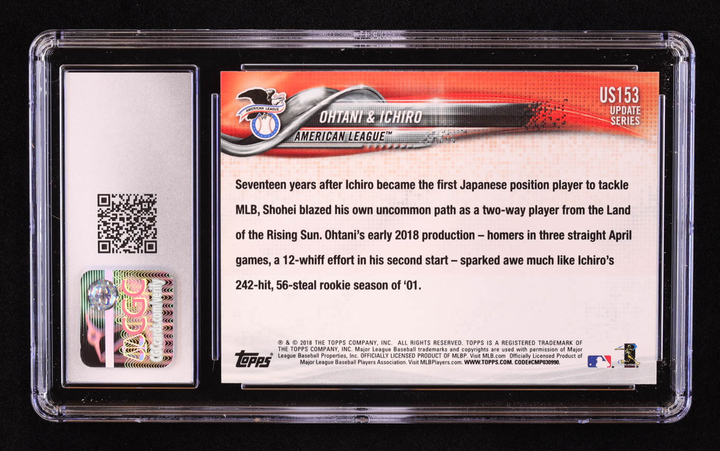 Shohei Ohtani / Ichiro Suzuki 2018 Topps Update #US153 RC / Japan's Finest (CGC 9)