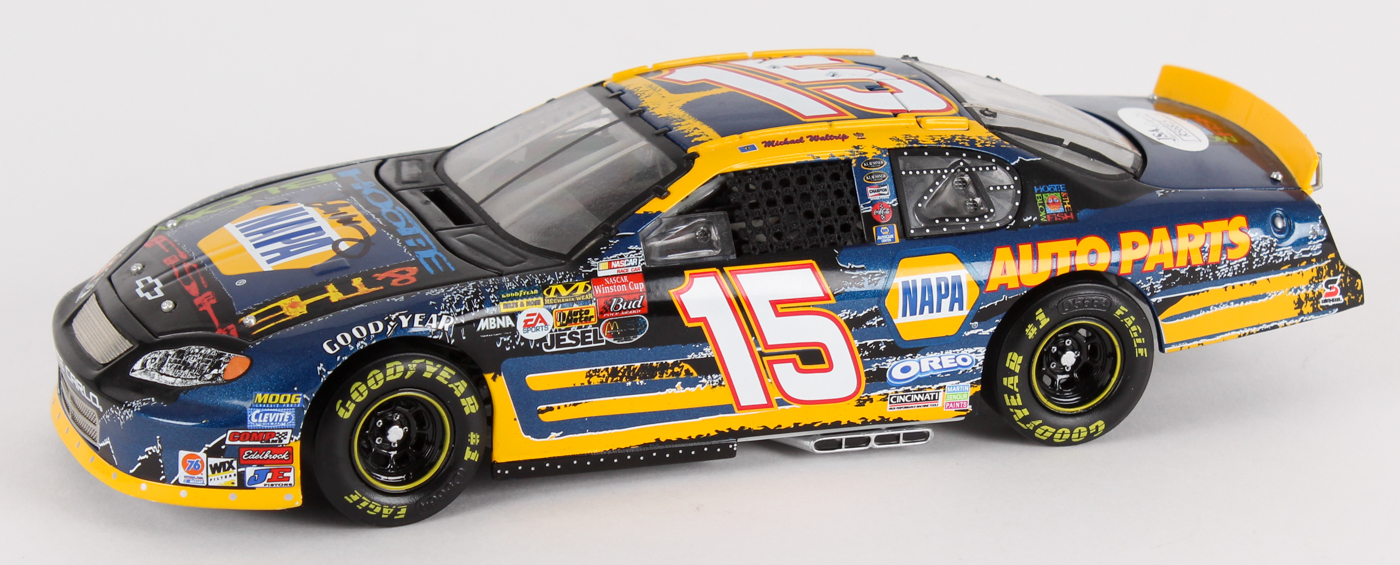 Elite NASCAR 1:24 Scale Die Cast Car. Hand-signed in black felt-tip pen by Michael Waltrip. The car comes in its original packaging. Limited Edition #146/496