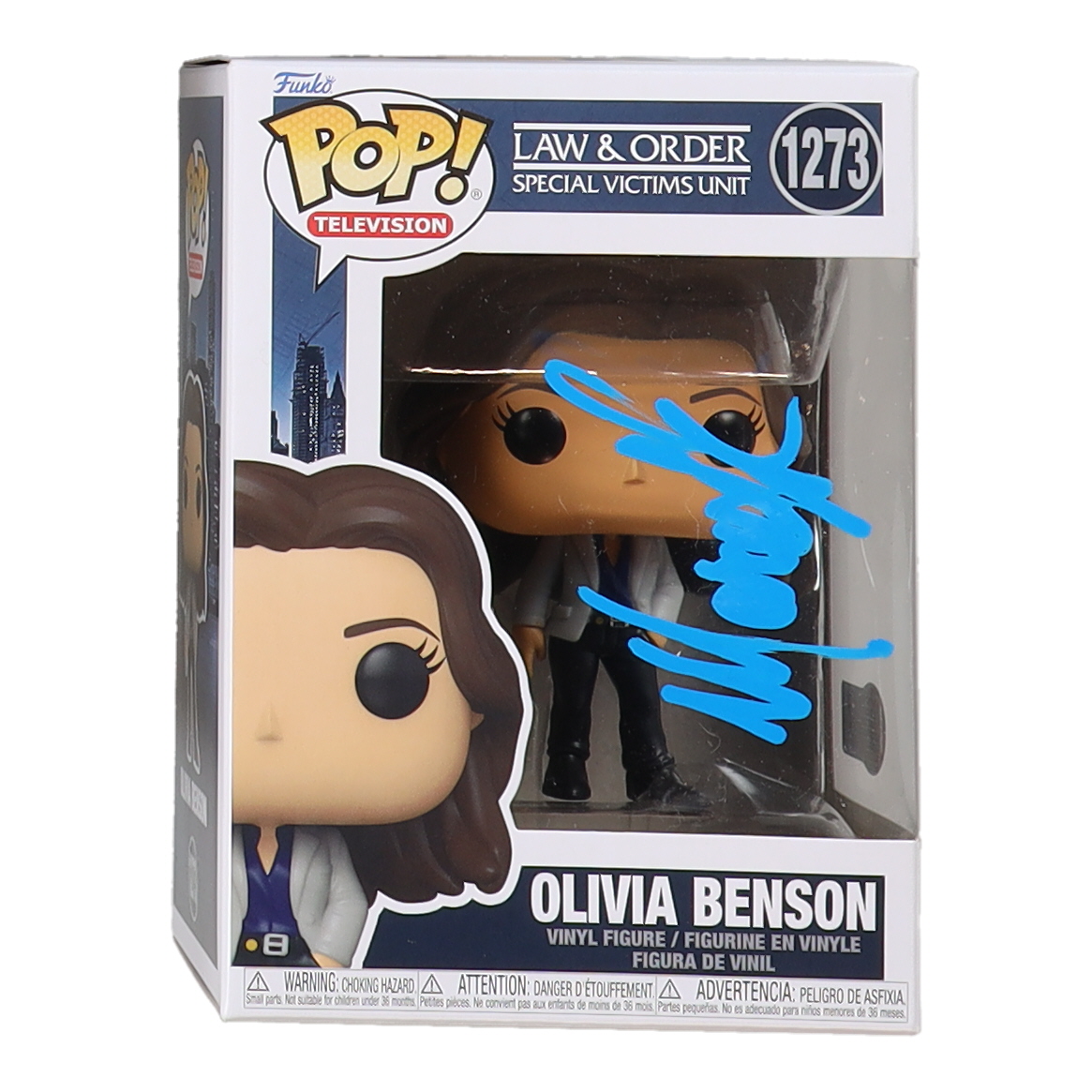 Figure measures approximately 4" tall. Hand-signed on the packaging by Mariska Hargitay.