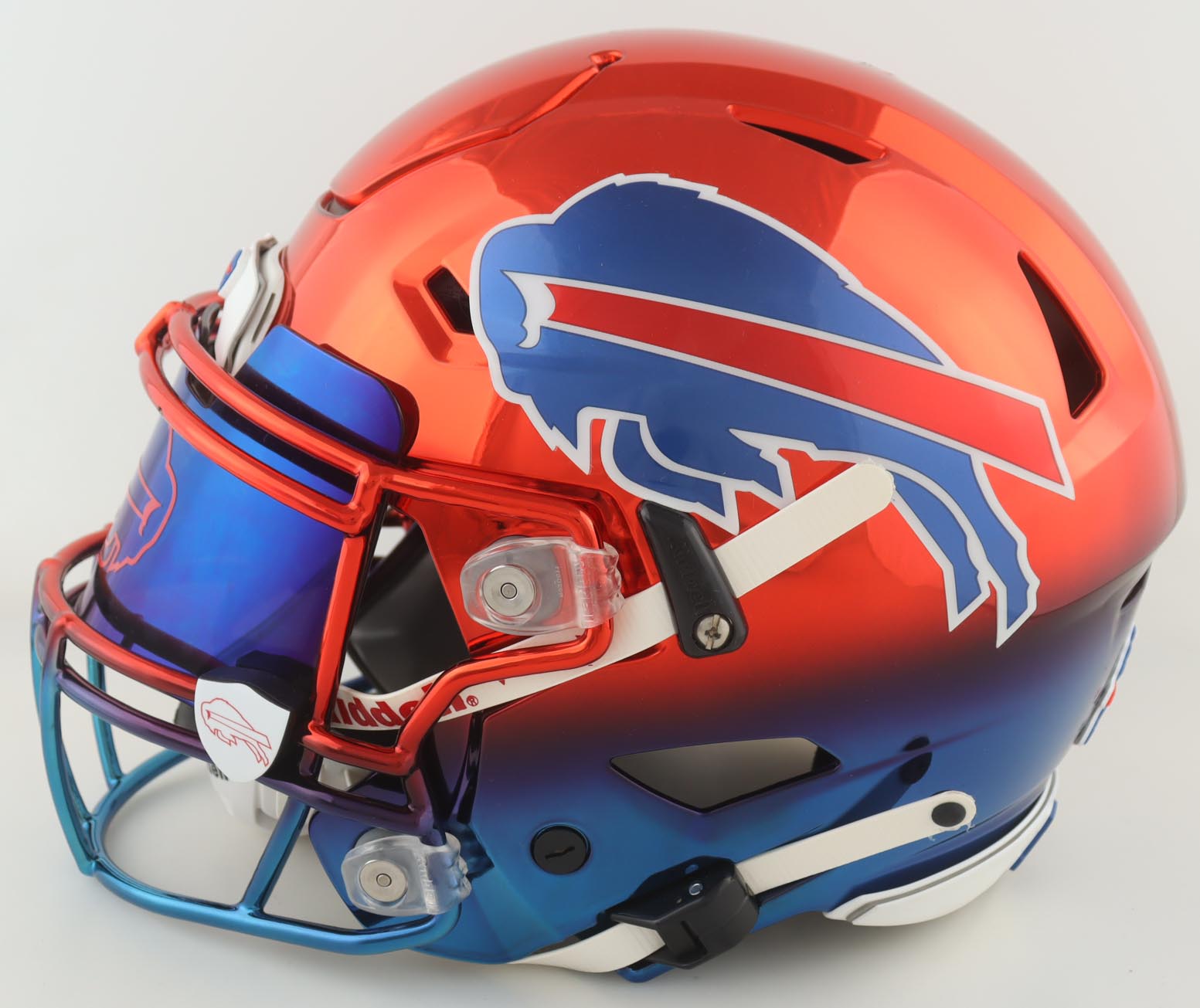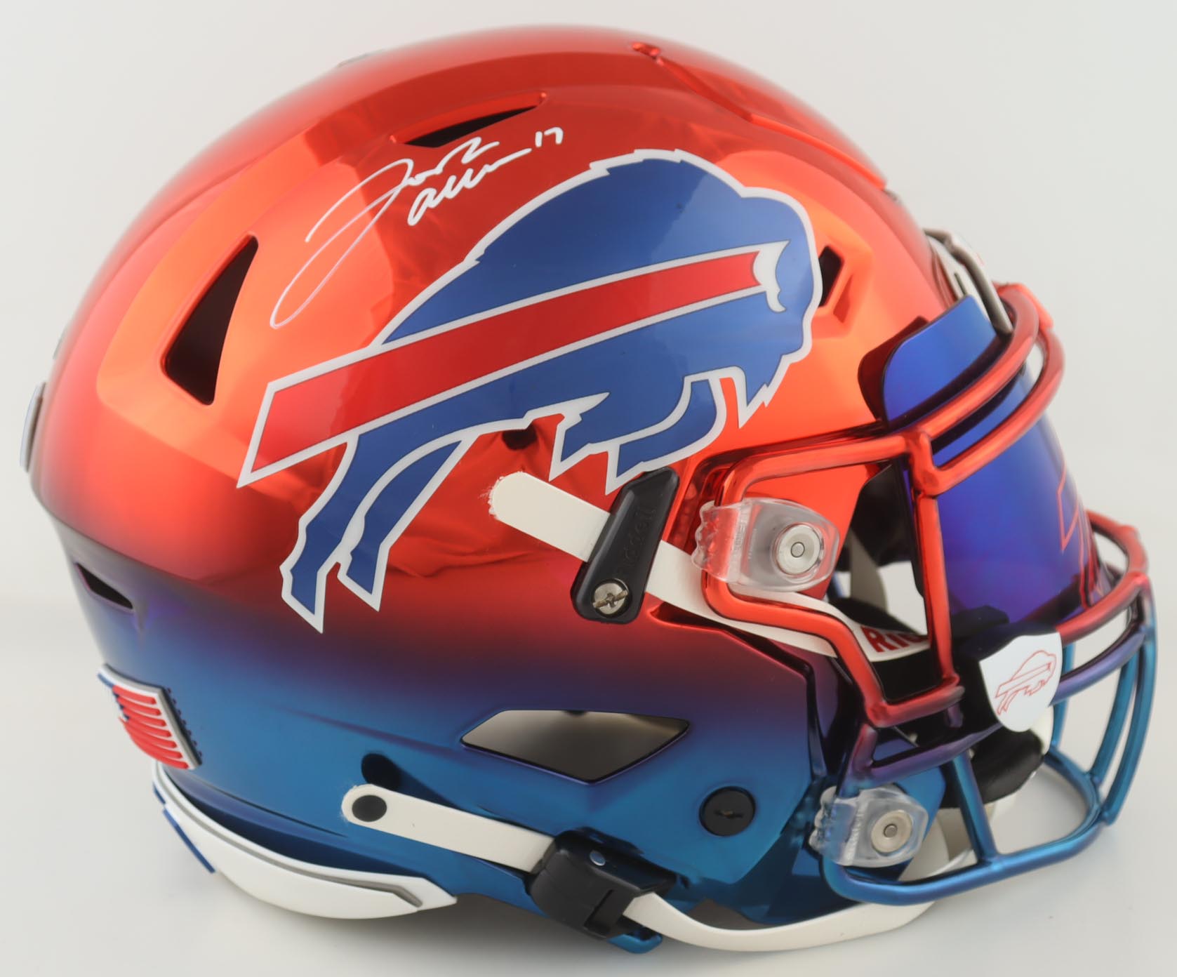 Josh Allen Signed Bills Full-Size Authentic On-Field Chrome Alternate SpeedFlex Helmet With Custom Visor & Display Case (Beckett)