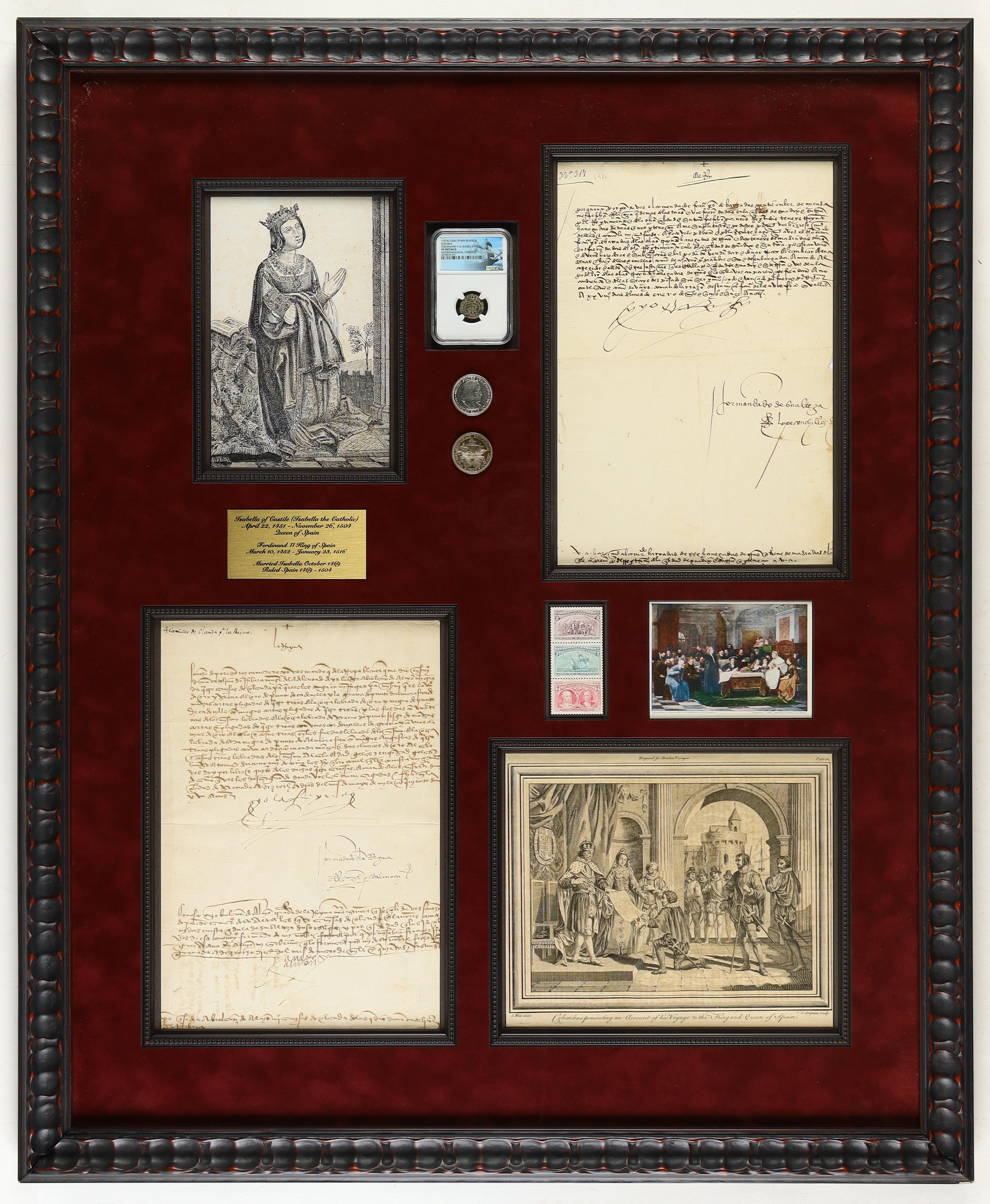 King Ferdinand II of Aragon & Isabella I of Castile Signed 1501 Custom Framed Documents Display with 1474-1504 Spain Blanca Cuenca (JSA & NGC)