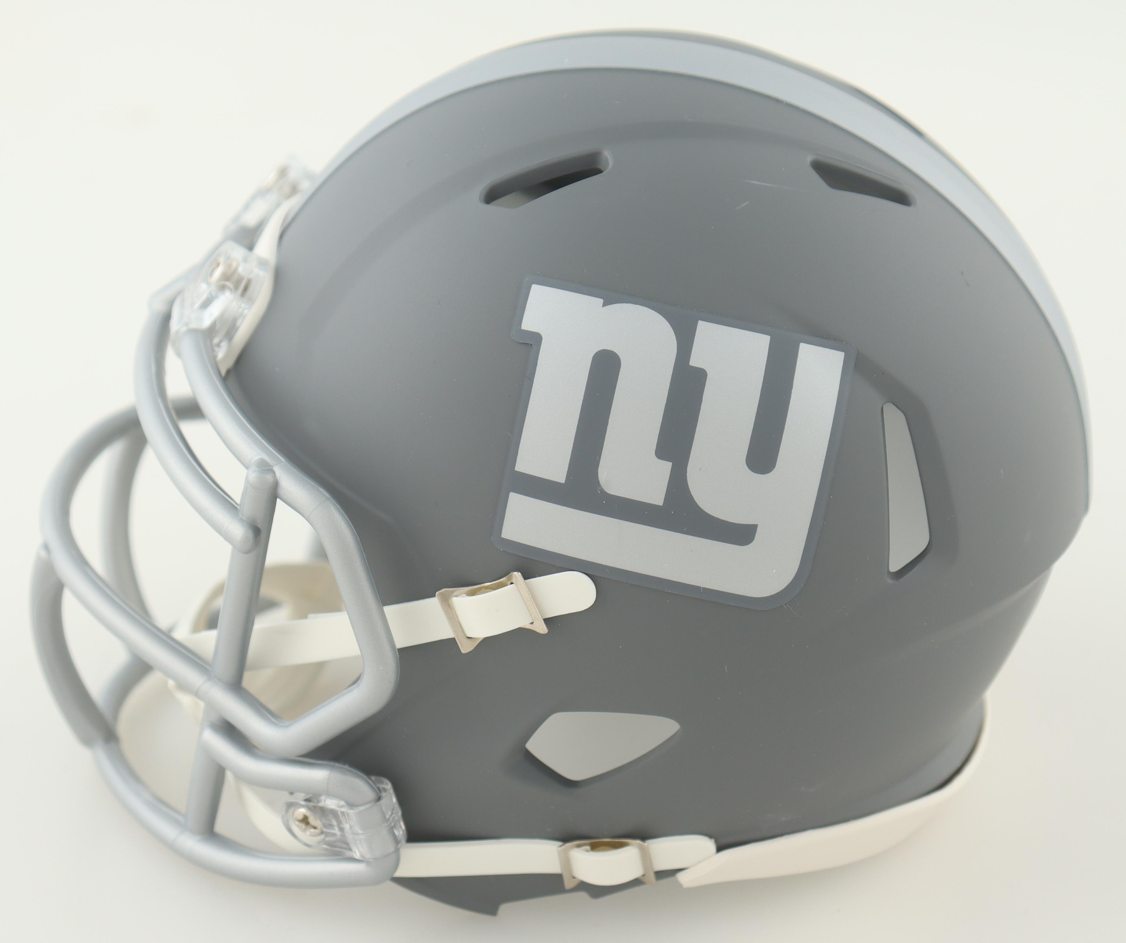 Riddell New York Giants Slate Alternate speed mini helmet. Hand-signed by Isaiah Simmons.