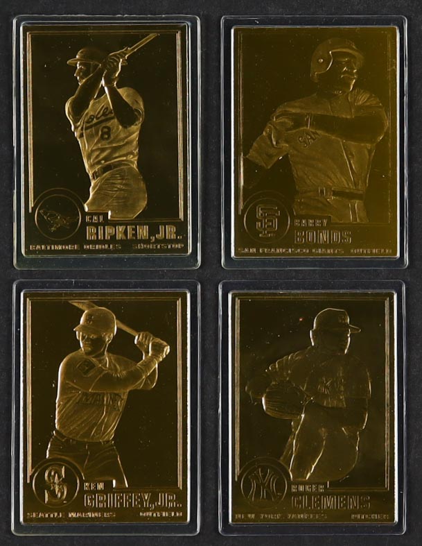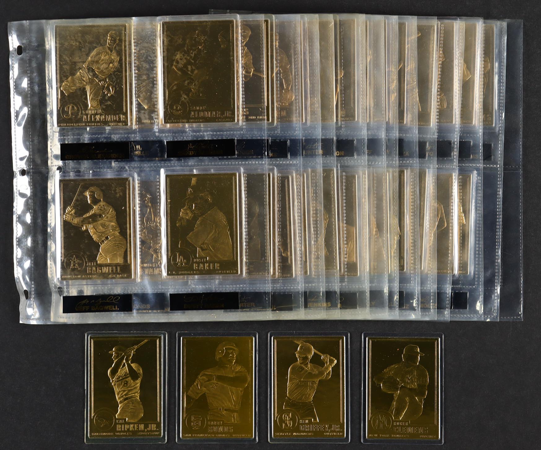 Complete Set of (50) Danbury Mint 22kt Gold Baseball Cards in Binder with Cal Ripken Jr. #52, Ken Griffey Jr. #55, Barry Bonds #66, Roger Clemens #67