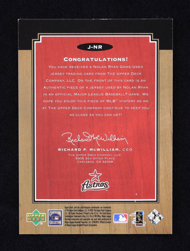 Nolan Ryan 2001 Upper Deck Legends Legendary Game Jersey #JNR