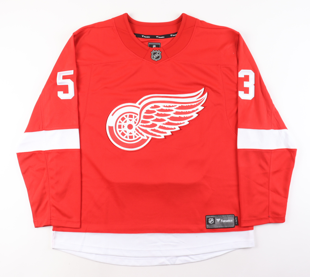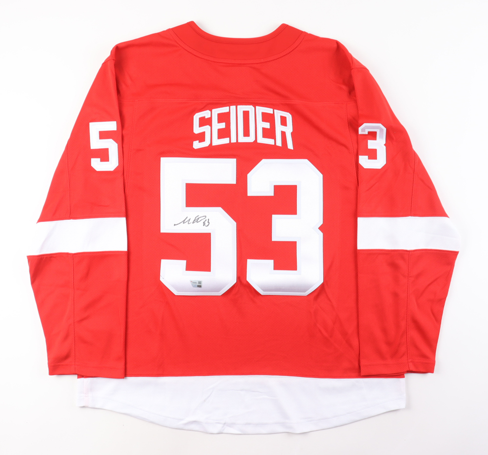 Fanatics jersey with everything pressed on, size XL. Hand-signed by Moritz Seider (Detroit Red Wings).