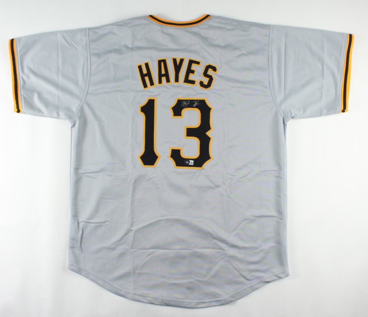 Custom jersey. Everything is sewn on, size XL. Hand-signed by Ke'Bryan Hayes.