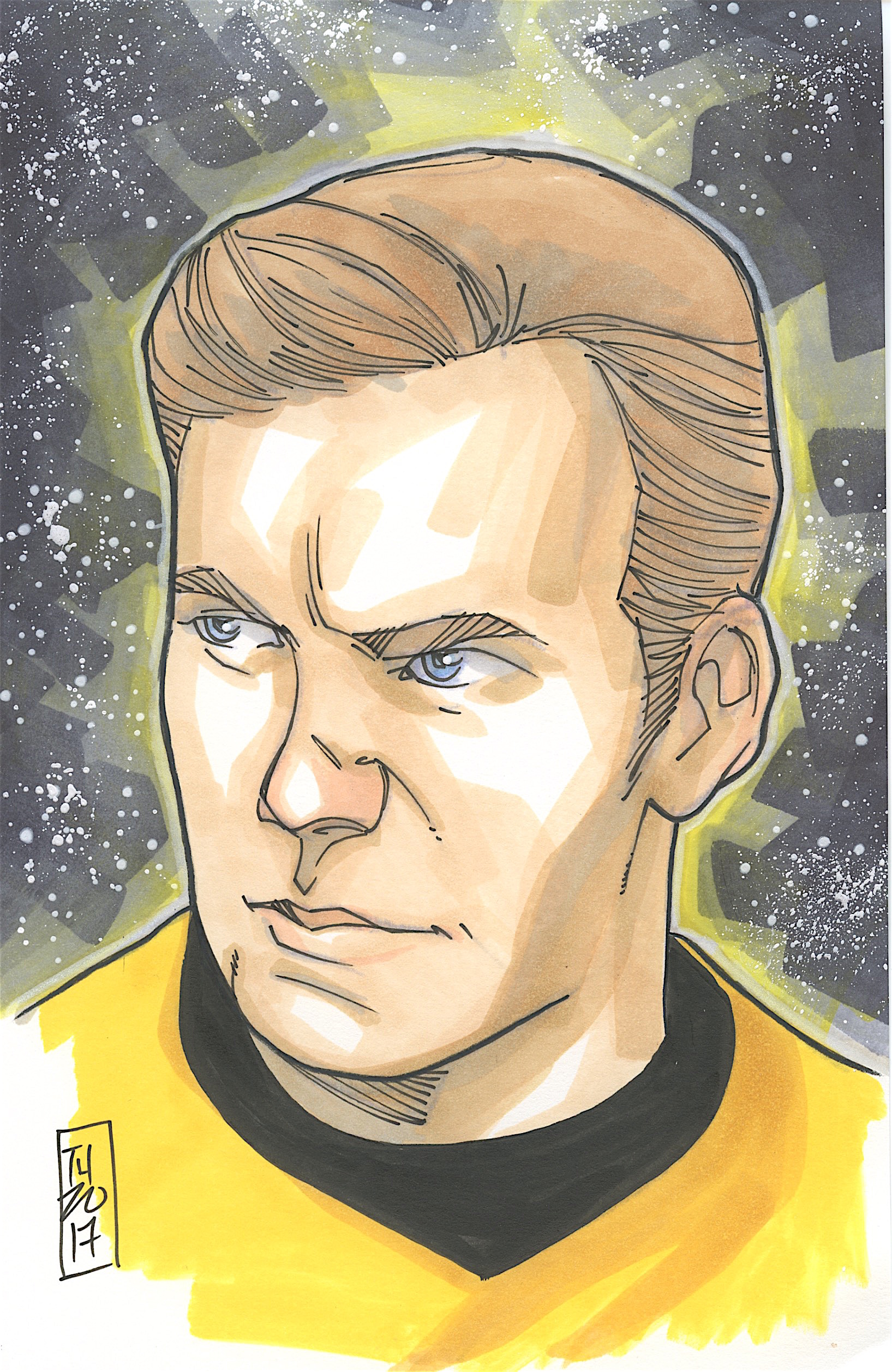 Tom Hodges - Captain Kirk "Star Trek" Signed ORIGINAL 5.5" x 8.5" Color Drawing on Paper (1/1)