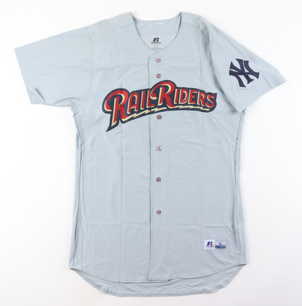 Russell Athletic jersey. Everything is sewn on, size L. Hand-signed by Starlin Castro (SWB RailRiders). Please note, there is a stain on the right shoulder.