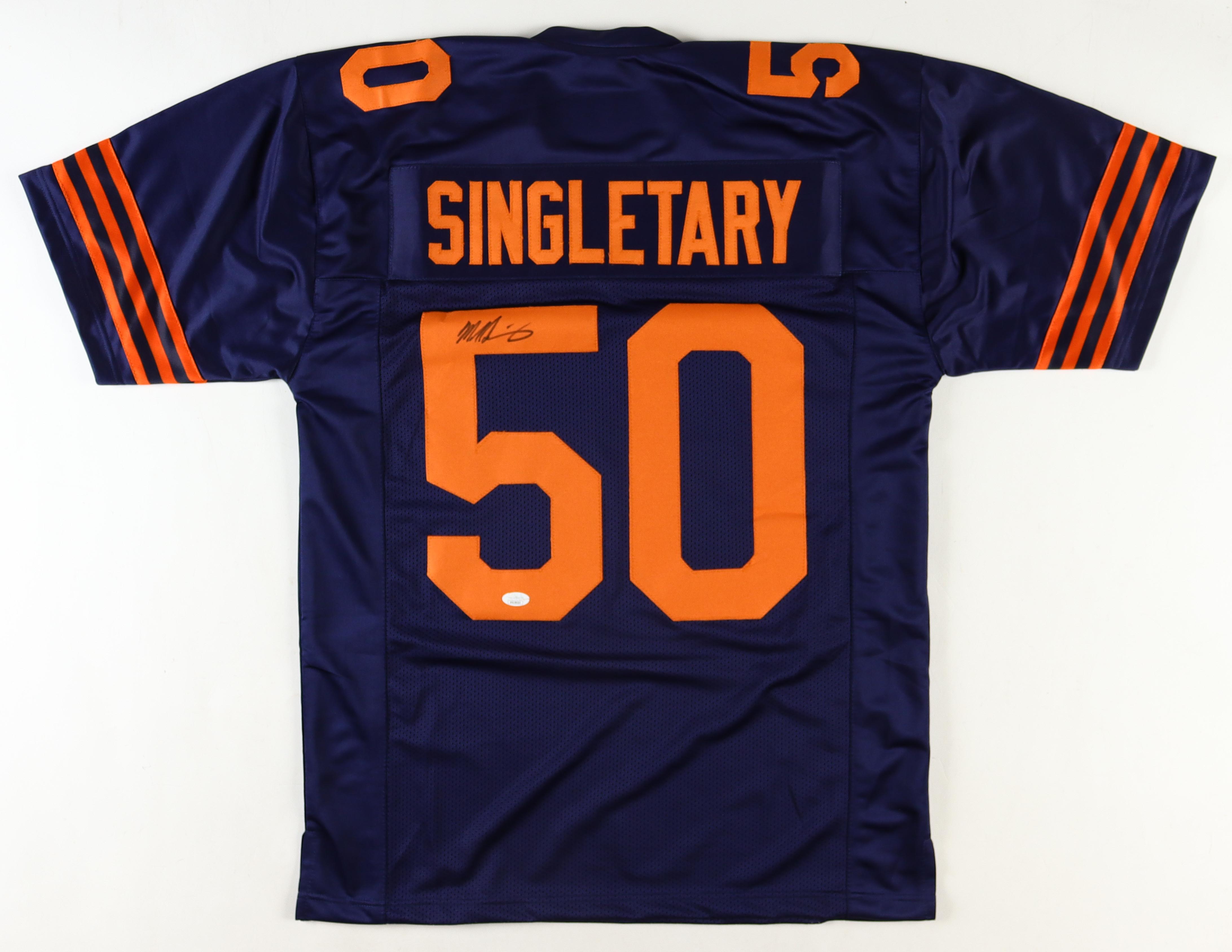 Custom jersey with everything sewn on, size XL. Hand-signed by Mike Singletary (HOF).