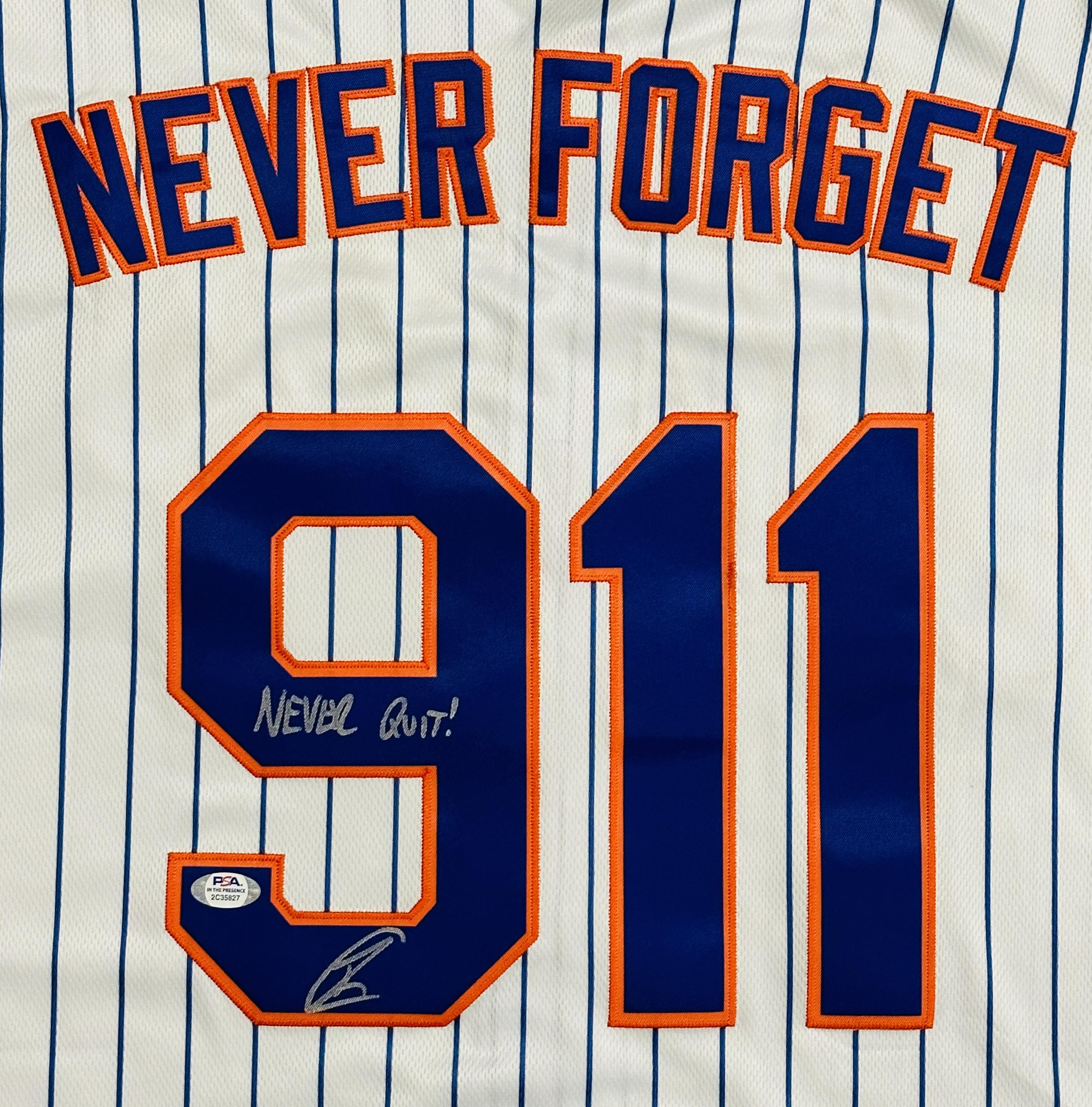 Robert O'Neill Signed "Never Forget" 9/11 Tribute Jersey Inscribed "Never Quit!" (PSA)