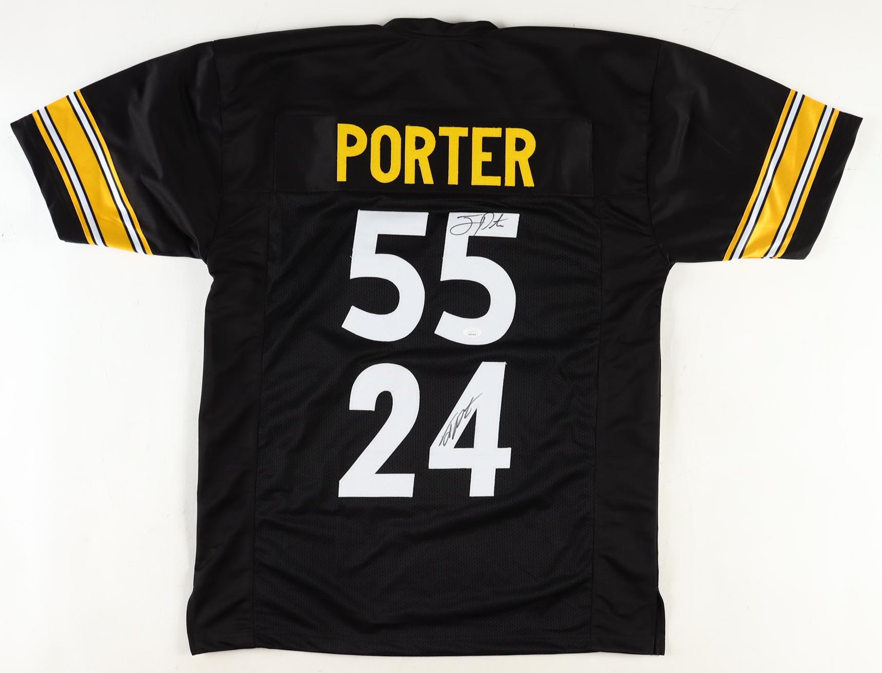 Custom jersey with everything sewn on, size XL. Hand-signed by Joey Porter Jr. and Joey Porter Sr.